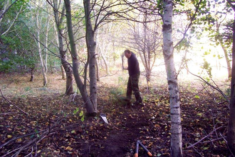 This was a build evening for Phil and Tom. When we arrived then the basis of a route on the North side of the pitch had already been marked out by Steve Smith and his wife. They were responsible for the trail at that time, relinquishing this to Phil in early 2009.