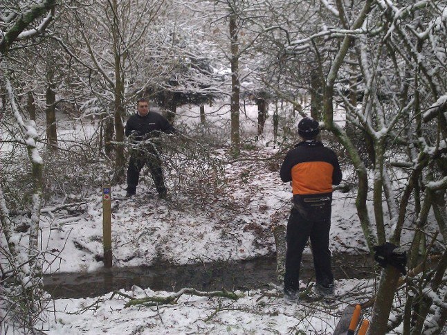 We had originally planned to spend the day moving material so that we could surface some muddy sections. A lot of snow fell on Friday night and when we arrived on Saturday the ground was frozen solid.