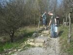 When we planned this day we decided that we didn’t want to tire ourselves out before a club ride. We’ve done that before and ended up being really weak on a ride. Usually only those who turn up for build days appreciate how physically demanding it can be. As usual we ended up setting ourselves an ambitious target and working into the dark in order to finish it. ![]() We met at 11am with Pete, his Land Rover, Andy Matthews, Phil and myself (Tom). We started out with some remedial work on the rock steps (down steps) and the follow on jump. Rocks were reseated, more material was added and a drainage pipe was installed on the large berm after the steps. The rock feature on the climb had the cheats bypass blocked off with more rocks. Matthew Kerry turned up with a water sprayer and treated the new gravel. We were joined by Mike Jeffries and Chris Hopkinson as we started work on our main target for the day. This was filling in the boggy areas near the pond near the end of the trail. Some of this was so bad that it was dug out deep enough to receive a double layer of concrete blocks. New recruit Courtney had arrived by this time. The excess mud was used to double the size of the berm just before the section. ![]() The route in this area was first cut out in October 2008. Kat brought us cakes and ice creams in the afternoon, which was nice. By 5pm we had committed ourselves to finishing off the whole job, so a team of five of us spent 2 hours filling sacks with gravel whilst Pete and Chris tipped it. The hard work paid off – we had it finished by 7:20pm. It was great to see another boggy area be replaced with a decent surface. Looking at the progress map below it’s clear that the East side of the pitch is the last remaining big surfacing job. We aim to get that done next. |