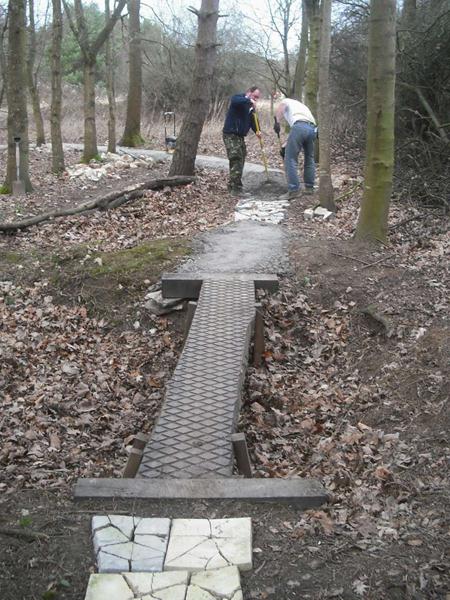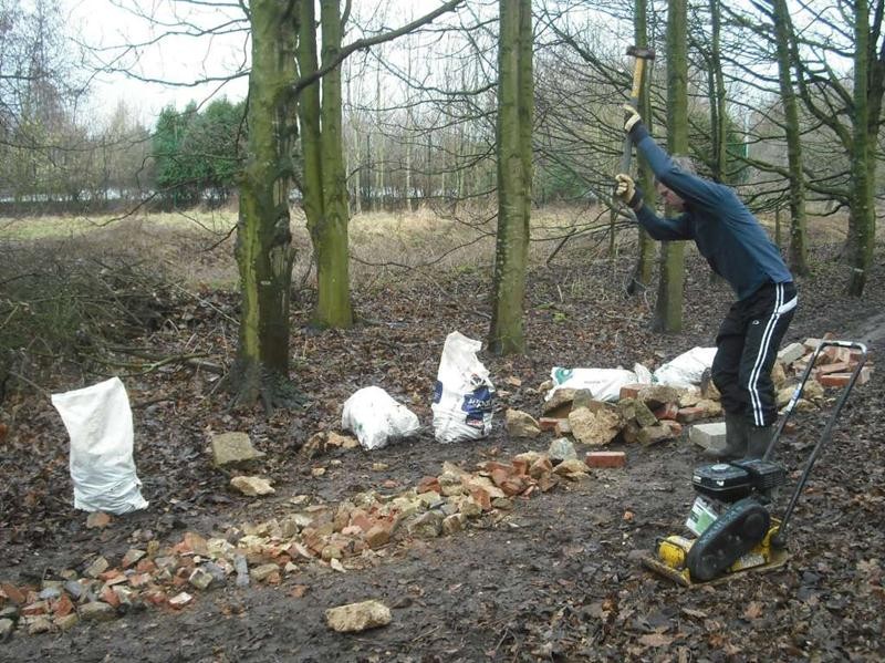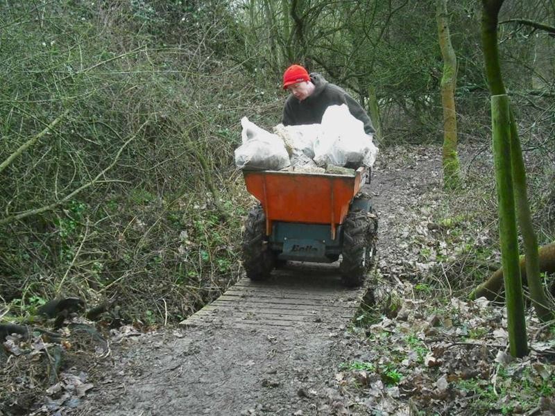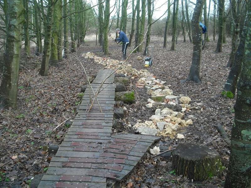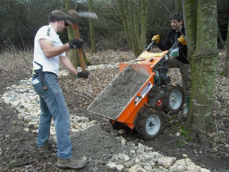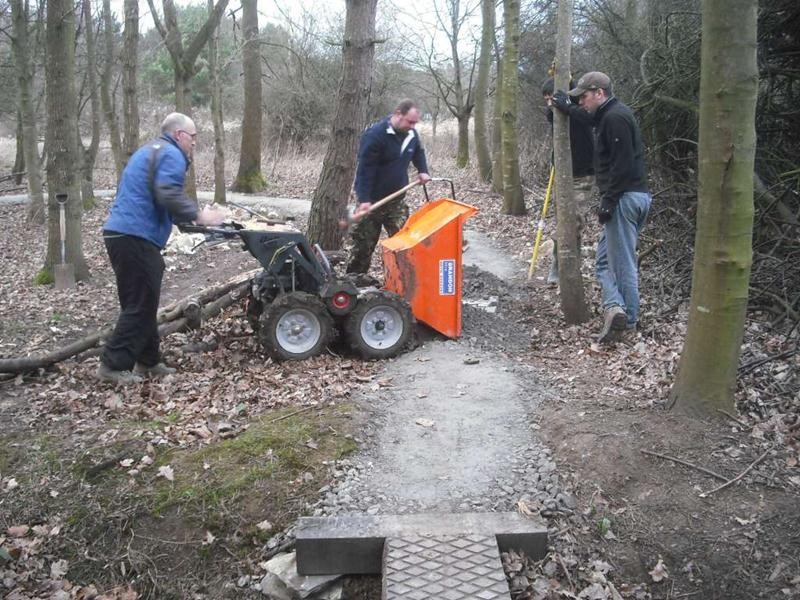 ![]() Saturday 29th JanI spent the day smashing up a concrete path in Marlborough as a source of rubble for the trail. Friday 4thI spent the afternoon and evening moving rubble from the house in Marlborough down to the trail. Chris brought us some concrete slabs on Friday night. Saturday 5thThe day began early for me, leaving the house at 7:15am so I could pick up some more rubble. This time from Purton. ![]() Brandon hire delivered the power barrow and compactor early, so by 9am I was moving the first load of rubble. Attention for the weekend was focussed on filling in the muddy area that follows on from the woodwork near the start. The exit bridge was wide enough for the power barrow to cross over which was useful. I was soon joined by Andy and Jez who carried on shifting rubble from the car park down to the muddy area. This gave me an opportunity to go and pick up some more rubble from Purton. Chris and Phil joined at midday when Andy and Jez had to go. They continued moving rubble whilst I went to pick up some more rubble from Marlborough. ![]() By the end of the day the entire muddy section was full of rubble. This includes the slightly more interesting and twisty route off the end of the log crossing. The end of this now has a drop off a pile of rubble which should be a fun little feature when it’s finished. Sunday 6thBy 10am we were at the trail ready to use the power barrow. Jez took the first load away from the car park and 5 minutes later reversed his steps back to us; the front right wheel was flat. I took this up to Bell Tyres and Exhausts to have it fixed. By 11am the show was back on the road. Jez had to go but power barrow enthusiast Richard was on the scene. We spent the day shifting barrow loads of chippings down to the trail. ![]() Pete and Phil spent the day hammering the rubble into the ground and compacting the chippings. We were joined by Matthew Kerry who spent a few hours on power barrow loading duties. Tony joined us in the afternoon despite an ankle injury from the previous day. By the end of Sunday we had 3/4 of the rubble area filled in with chippings. We estimate that one more day with the power barrow and the section will be finished. ![]() A big thanks to the people who came out and helped this weekend. It was an epic amount of work and it will pay off in the future. ![]() |