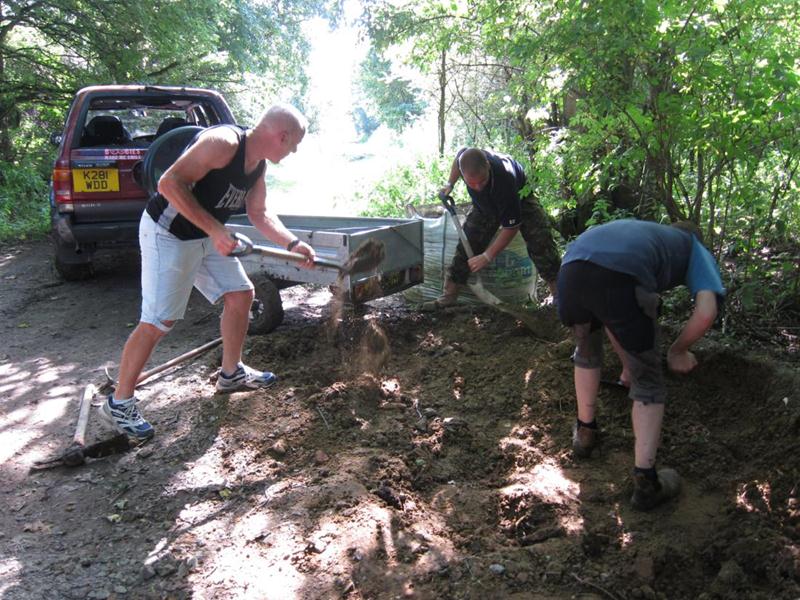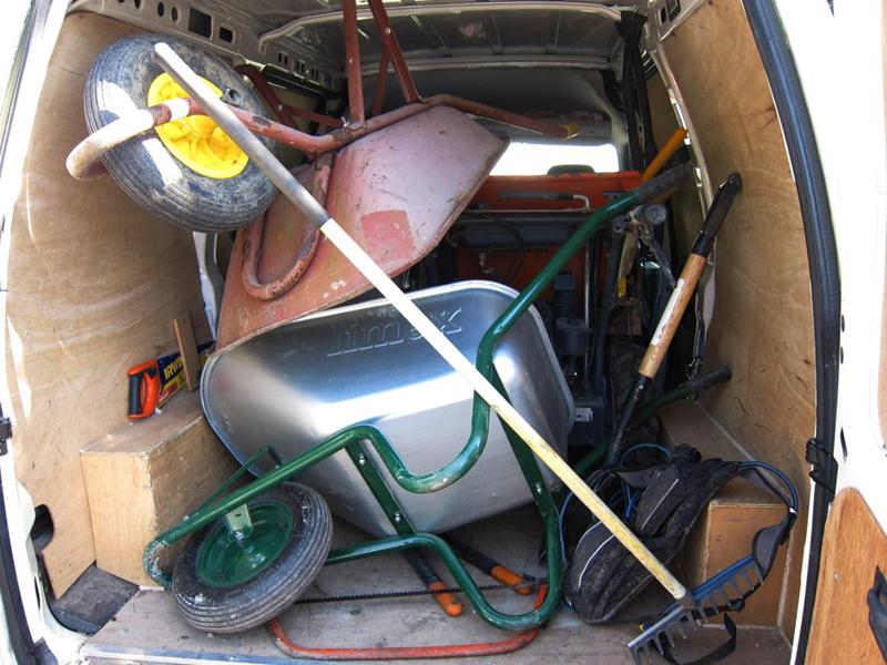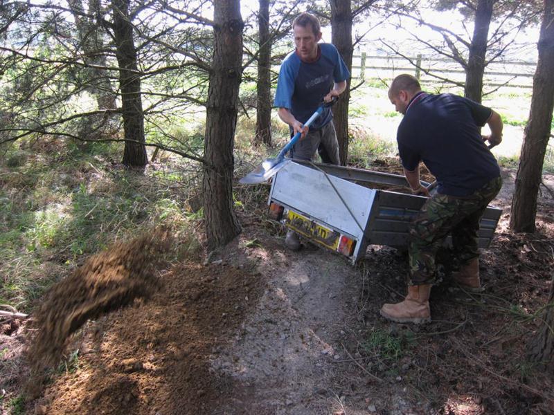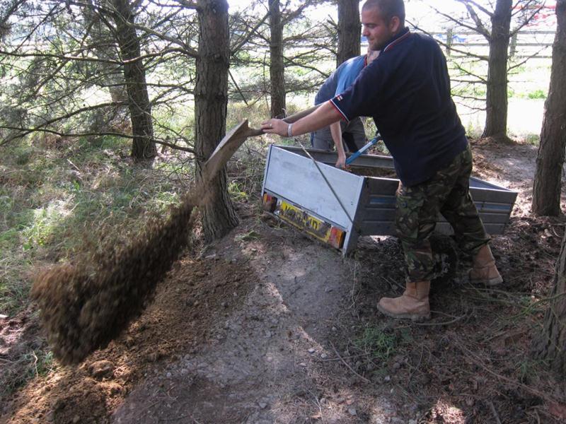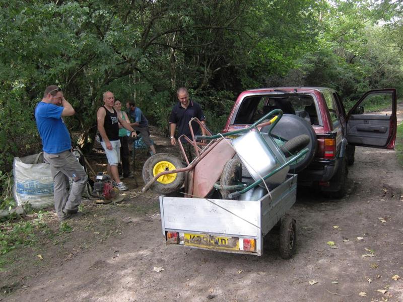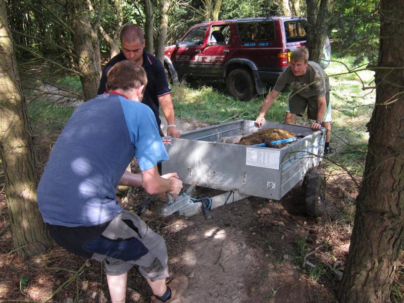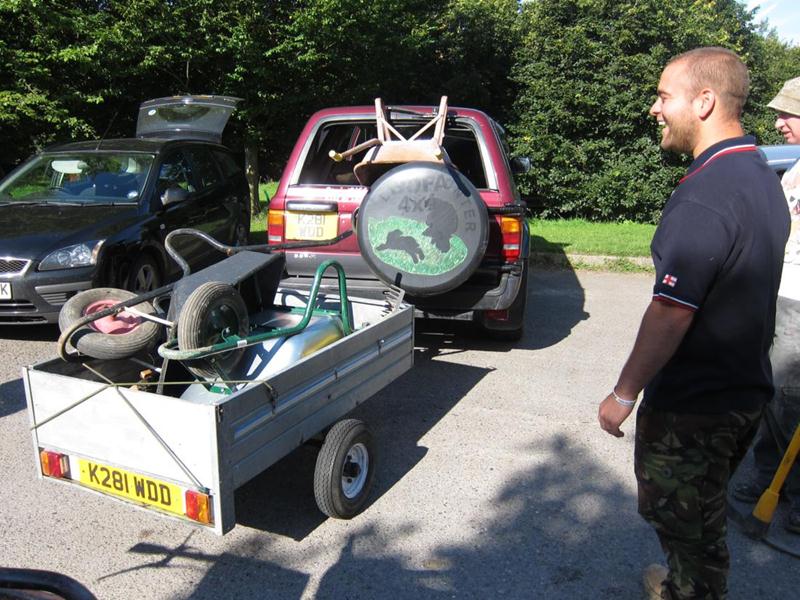 We had a head start because all 20 tonnes of material had been shifted on the previous day. We also had a new delivery option: Chris Bevington brought a trailer to tow behind his Hi-Lux.