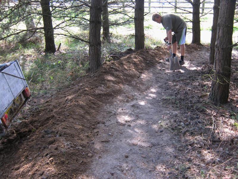 When there were no chippings available then the last of the mud pile was dug up. This was used to reinforce the back of several existing berms and the two new berms.