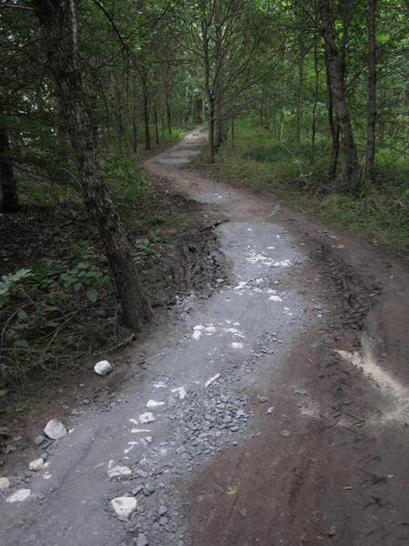 The last berm received drainage improvements. This involved digging up a load of mud so that water would fall away from the trail.