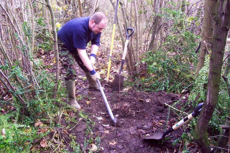 From our Facebook group: “Phil and myself spent a few hours digging and surfacing today. The gravelled section is now level with the Southern end of the pavillion. We’ve dug out a load more, ready for some more Land Rover based dumping”. From the photos you can see that we finished the rock feature as well as digging out the Southern end of the last section of the trail (next to the tennis courts now). It looks like it rained a bit too. |