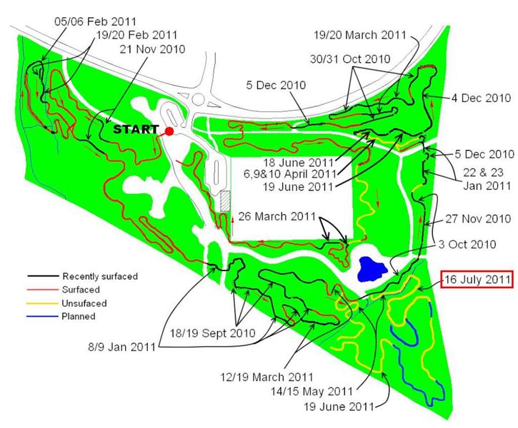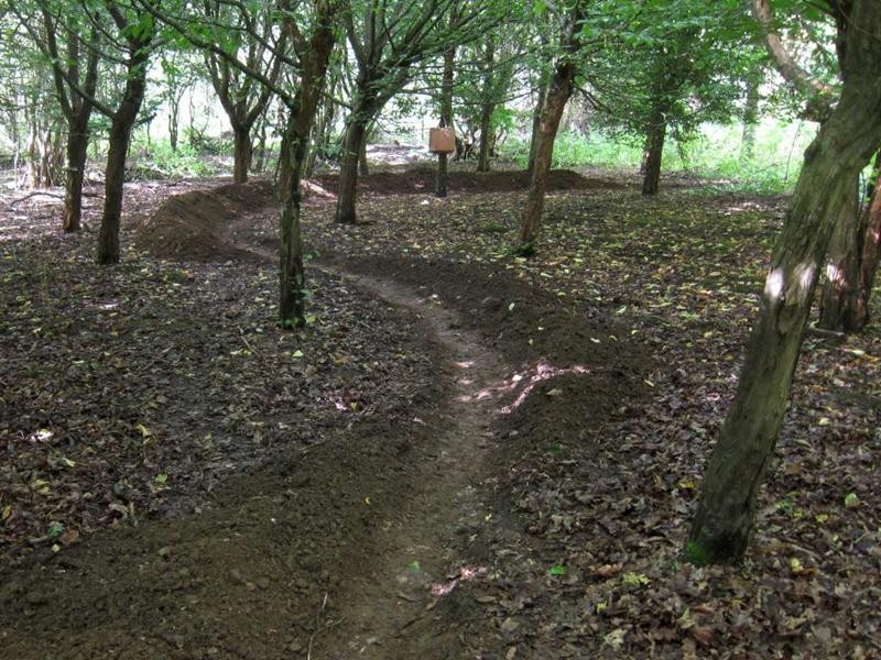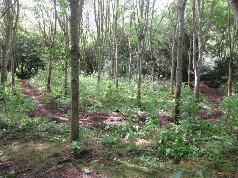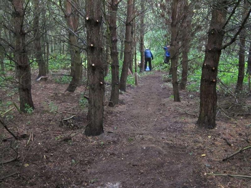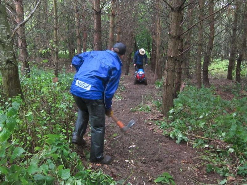 The target for the day was to dig out more trail in the triangle area. Tony quickly got busy with the rotorvator whilst the rest of us cleared branches for our slightly modified route. This was a straighter version of what we’d already marked out. Jez had come up with the idea of bypassing the woodwork section completely so a short cut for that was marked out.