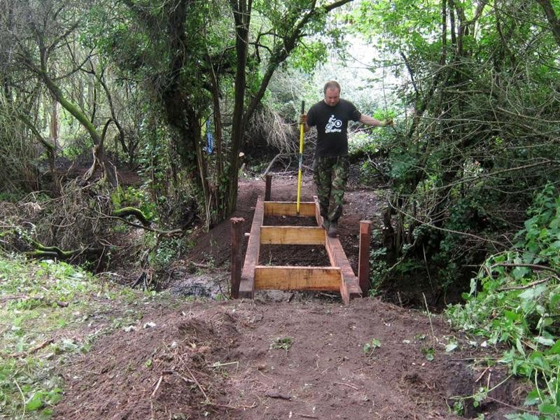 By the end of the day we had the new bridge in place plus the trail either side of it dug out (about 150m in total) plus Jez had joined a few sections of his woodwork together.