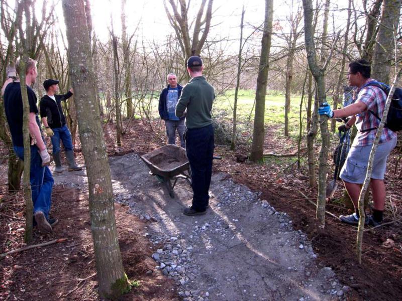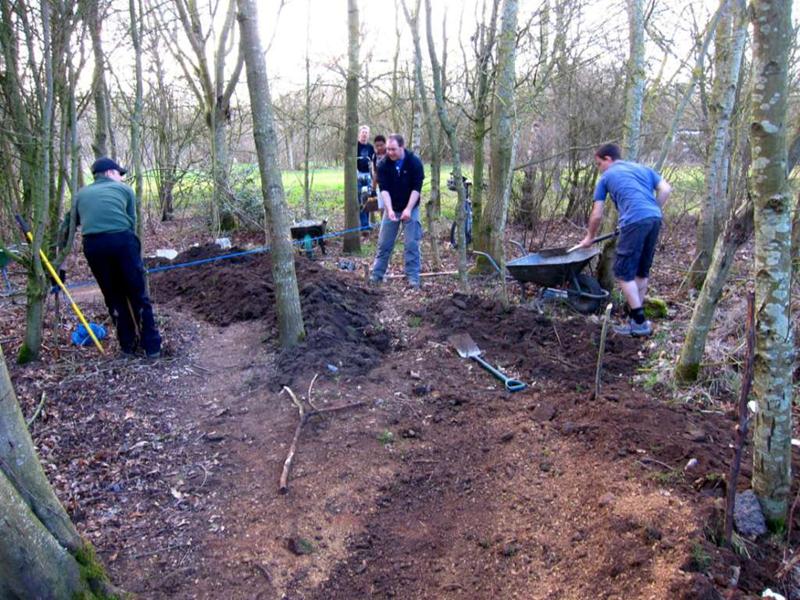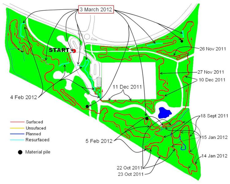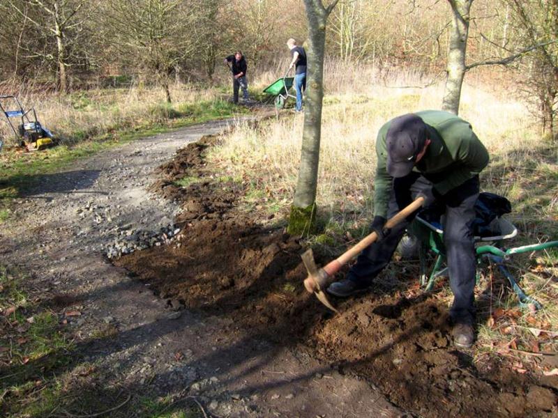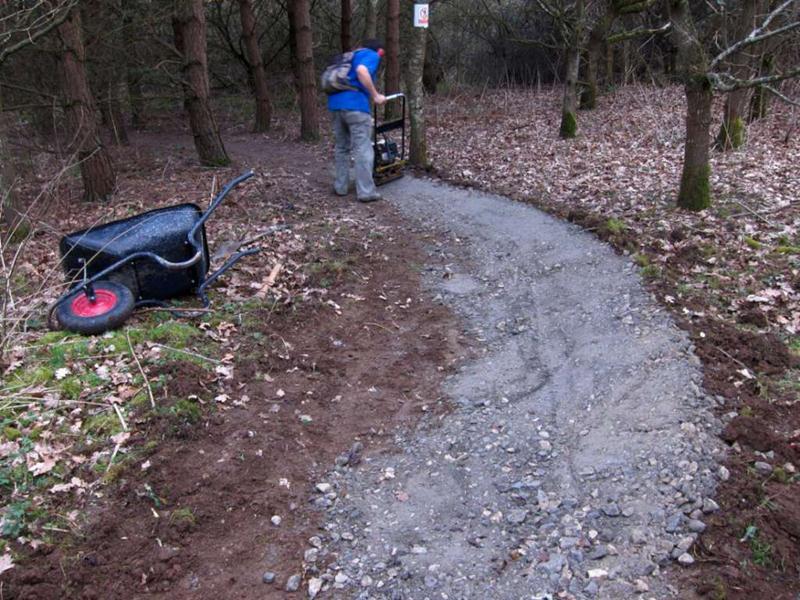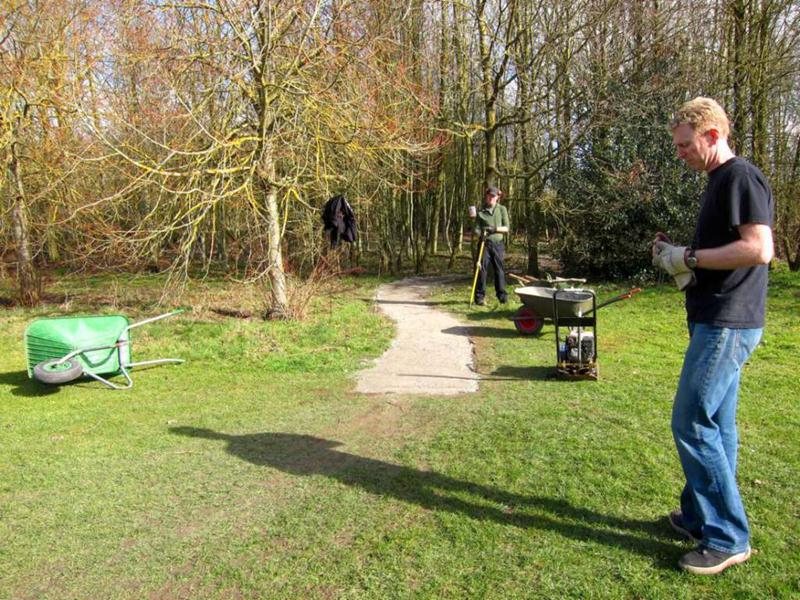 We surfaced 240m of trail in a day! Phil was on site from midday, so that makes 23 volunteers present – a record! Full list: |