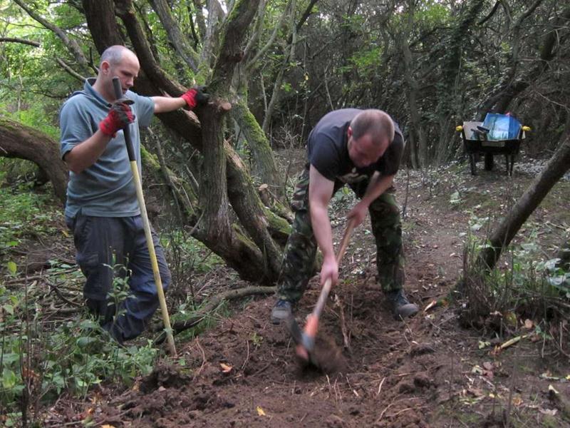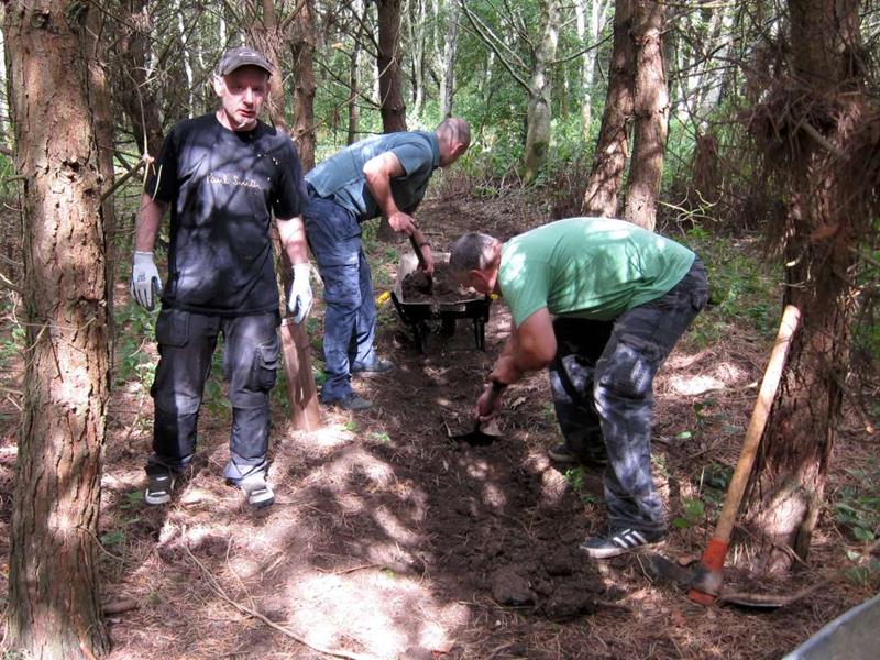 In the late afternoon Gary, Andy, Phil and myself walked round the triangle loop and widened and tweaked various bits of the trail. This is ready for our big push on the weekend of the 17th and 18th of September. We’re going to start surfacing the section on those days.
