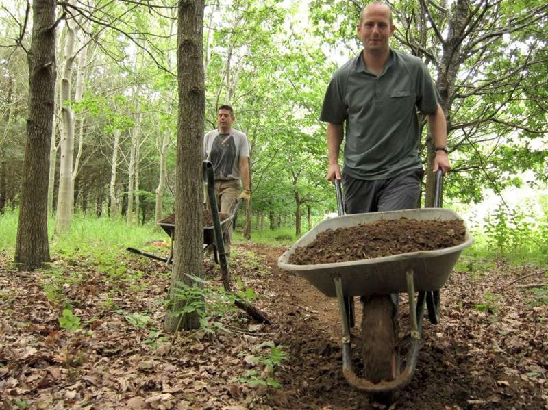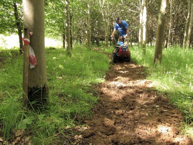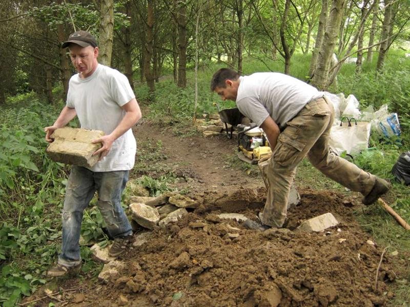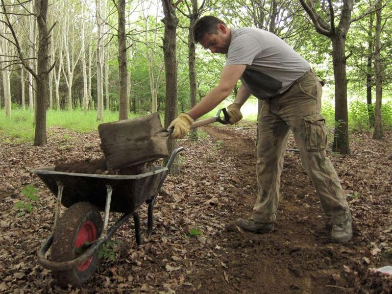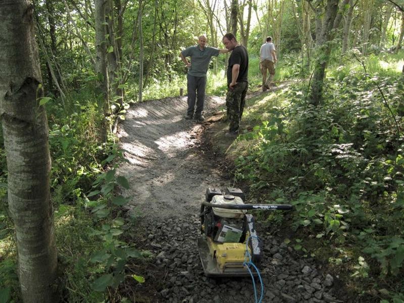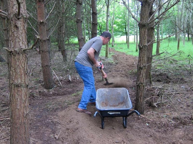 We had Tony on site with his motorvator ready for an early start. By 9:30am we were digging out the main route in the new triangle section. Whilst Tony and Phil raced off into the distance Sean, myself, Andy and Richard followed on behind digging out the mud. We built up several bumps and bermed corners. By lunch time we’d dug out around 200m of trail. Meanwhile the motorvatoring had reached approximately the 500m point.
