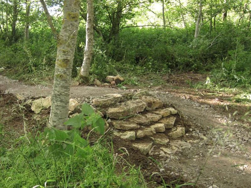 It wasn’t long before we followed him onto Piper’s hill. The plan was to finish surfacing the downhill section. Originally we’d built three bumps into this to act as rollers. The geometry of the bumps was wrong and it never really worked. The last bump had already been removed with the material used to enlarge the berm at the bottom of the hill. We decided to remove the top bump as well and use the material to enlarge the middle bump, giving us a much larger jump.
