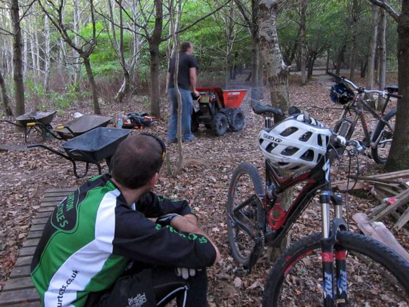 We continued moving material until disaster struck and the rear axle ripped itself off the power barrow. With that gone we moved back onto wheel barrows even though it was a fair distance to push. Just as things were flagging a bit then Simon from The Big Adventure Store arrived and helped us finish off the gravel pile. We were about two barrow loads short from connecting up two sections of surfaced trail. Pete from cccc/Bourton Cycles was also there following a ride. |