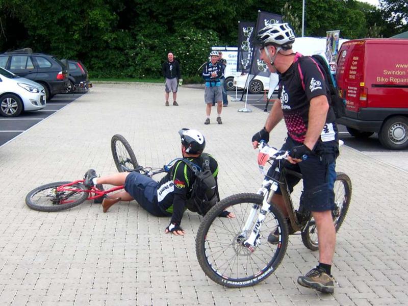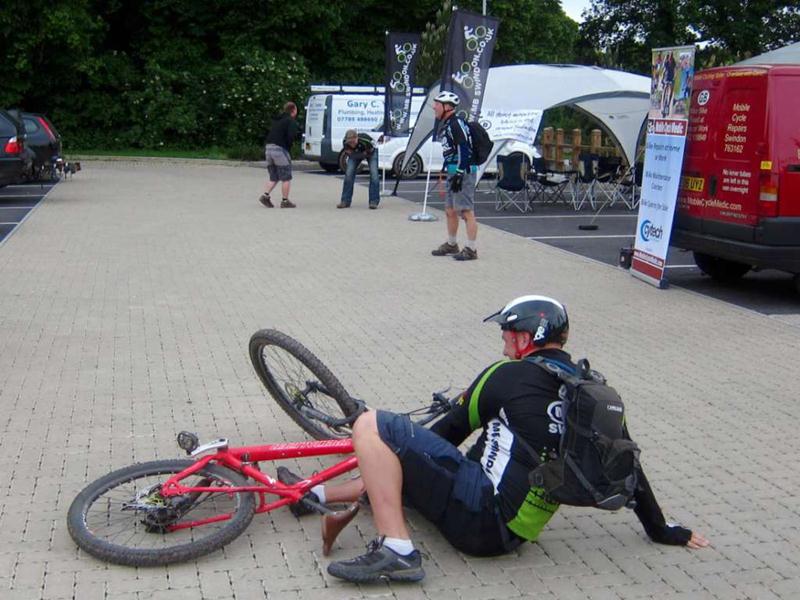 We had our first incident in the car park at the start where a big wheelie ended up being too big for Chris.