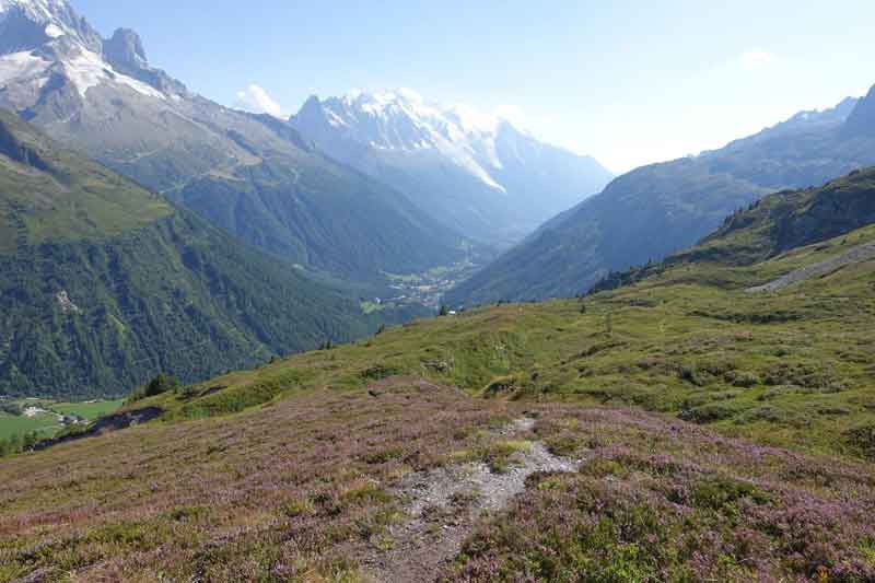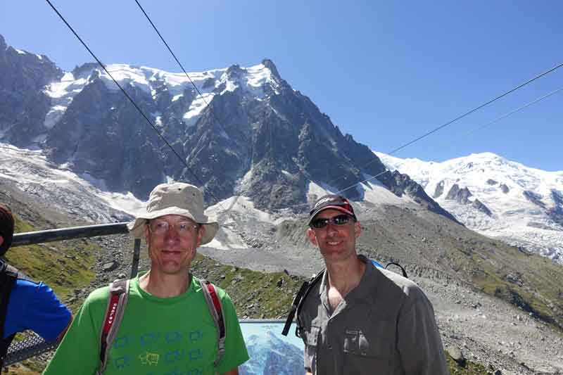 For most of us this was our first look around the town. It was already busy with tourists from far and wide and many were sightseeing rather than participating in adventure sports. Chamonix is very much a working town all year round. It is one of the few resorts, which attracts more people in the summer than winter. We stopped at a very good coffee shop called (star)Bucks, Mark was happy. After coffee we headed towards Les Houches with sandwich baguettes in the backpacks.