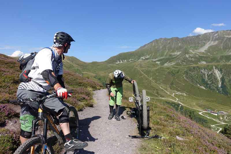 The journey from Swindon to Argentiere for Richard and Harry was quite eventful to say the least and had nothing to do with the Calais migrant problems (I won’t elaborate, but watch out for a possible story on the AA featuring Richard on BBC’s Watchdog program) Everyone eventually arrived on the Saturday night except for 1 guest from Sweden who turned up about 1:00 am. After a home cooked meal, we all slept quite well I think and in the morning we were up early in anticipation for some mountain bike riding.