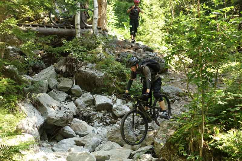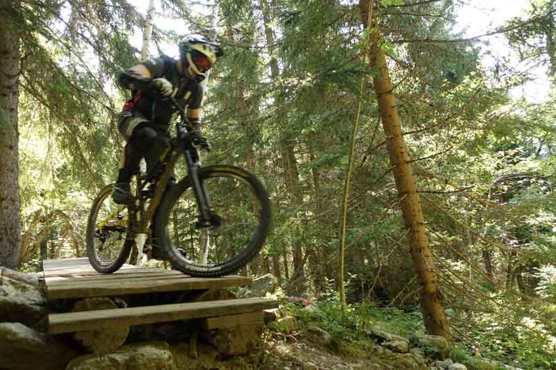 “Fondue – this trail descends around 900m vertically, and features 47 – yes 47 – switchbacks as it descends from the lift station to the valley floor in Argentiere. It will turn your brake pads into melted cheese – hence its name! It’s actually not a terribly technical trail, with long, flowing sections of singletrack between corners – but the turns get trickier and trickier as you go. All of the switchbacks can be ridden, and most people will clear the majority of them – but any rider who can clear every single one is doing a really good job – only a handful of people have cleared all 47. A lot of people can do 46 of them, but one in particular catches 99.9% of people out! This trail is fantastic for honing your cornering technique, and as it spits you out right next to the lift station most people ask to go back up for a second run…& sometimes a third as they feel skills improving with each descent. This one comes right to our front door!”