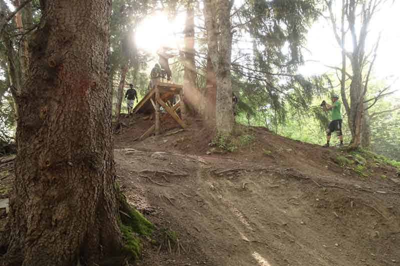 We returned to Les Houches and did 2 runs down from the top of the lift. Here we found the Bike Park with red and blue runs. They were fun and are fairly typical of any decent Bike Park… big berms, table tops, steps and north shore (rideable woodwork features). We spent a little time on the north shore and had a go off some of the features (except for one silly looking drop). Les Houches has a lot more tree cover than Le Tour so the Bike Park runs here are more varied and enjoyable.