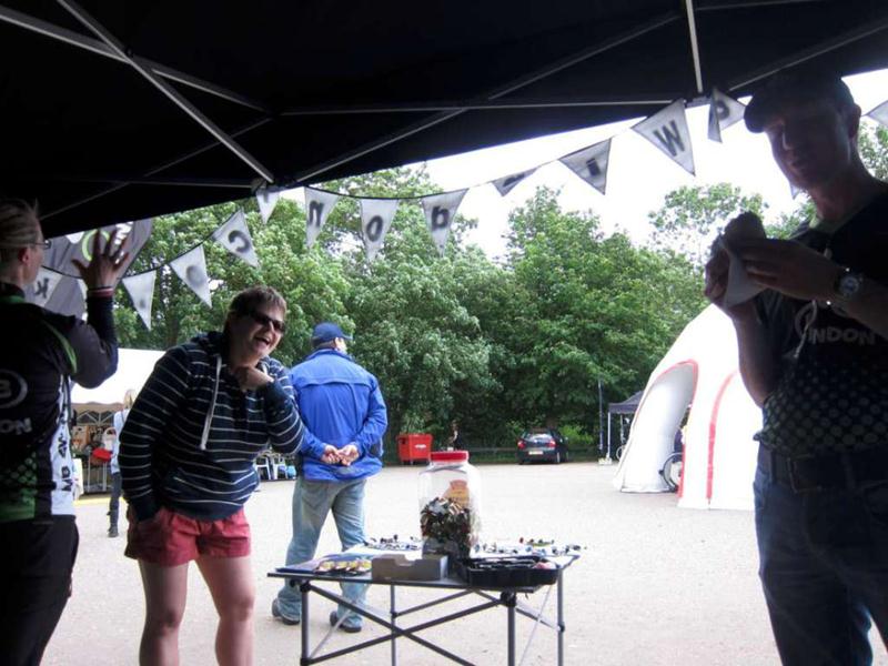 Several hours later the last rider passed us so we dismantled the kit and returned to base. Sharon and Kat had done great work handing out goody bags and promoting the club.