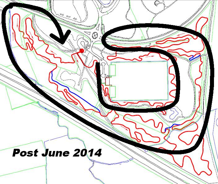 Club chairman Phil Mayger is very excited about the possibilities “it actually works a lot better this way round. Some things come up a lot sooner such as the bit near the end (start) round the pond. The triangle is still in the middle of the lap and the bits near the start (end) now happen later. The woodwork at the end (start) is still one of my favourite features and the berm just after (before) it flows a lot better.”