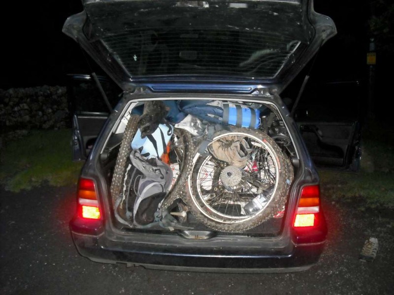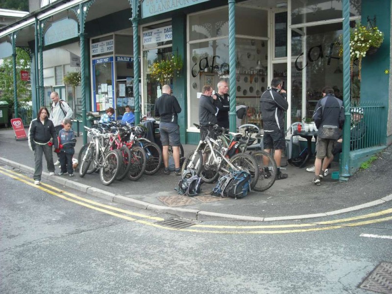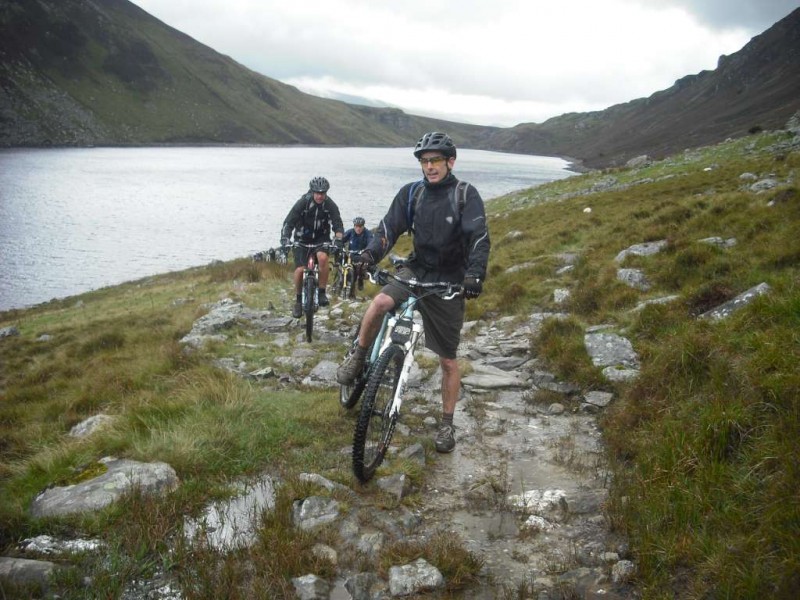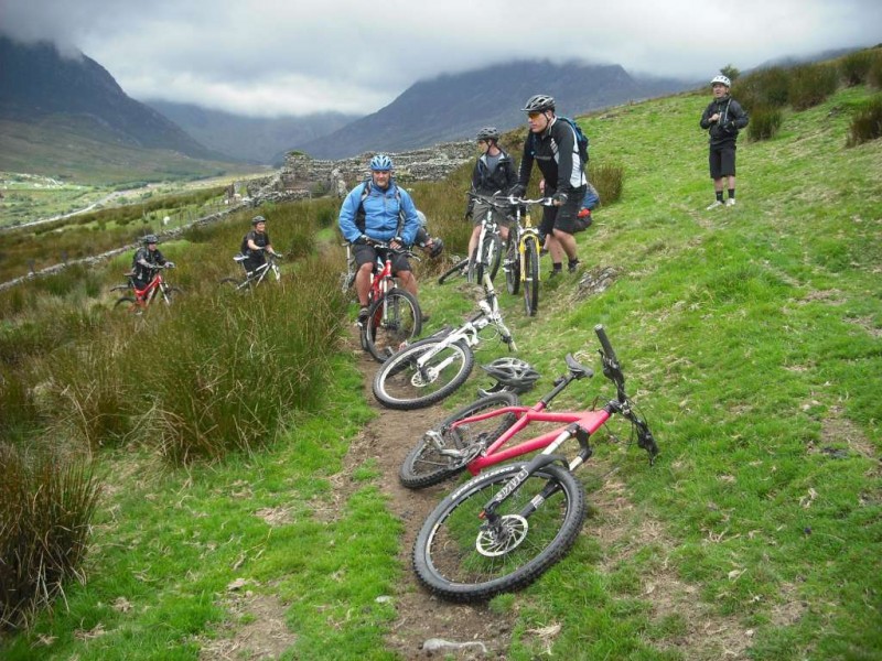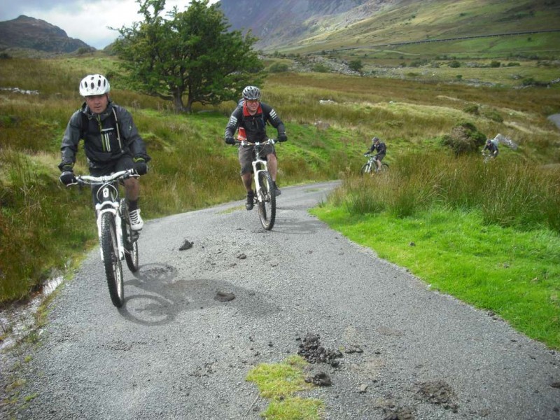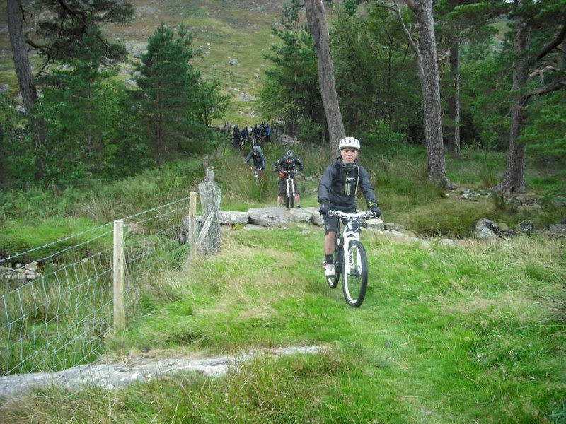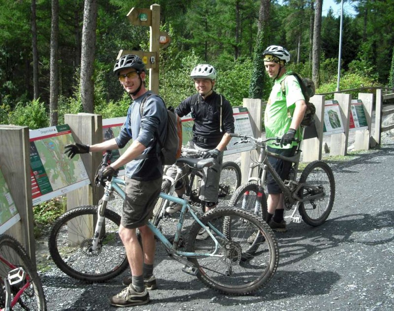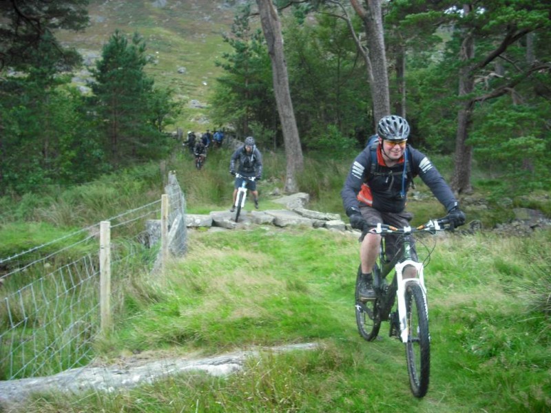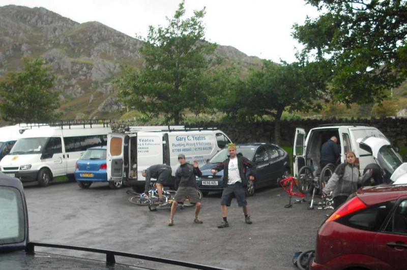 MBSwindon North Wales Trip August 2010 This was a four day trip to North Wales. Friday 27th Aug 2010 Most people arrived at the Llyn Gwynan camp site near Beddgelert on Friday. An evening trip was made to Coed-y-Brenin for a ride. We had 12 happy campers by midnight. Sat 28th We had a 30 mile epic ride planned. This combined the well known Llyn Cowlyd killer loop with the Marin Trail at Betws-y-coed. See Google map / Bikely map for details. It claims 56km and 1745m of ascent. After some serious sausage sandwich action, some general faffing and then some van starting issues we were on the bikes by 11am. The route began in the car park behind the Pinnacle Cafe at Capel Curig. It had been raining off and on most of the morning and this turned harder as we walked up through knee deep boggy sections on the hill up to the reservoir. Mechanically things didn’t go too well, with a puncture within quarter of an hour of starting. Then we had a rider whose legs were turning but the wheels were not. He’d got a permanent freewheel, which isn’t much use on a hilly ride. We tried using cable ties to connect the hub to the wheel, but this was a much use as a chocolate teapot and lasted all of 10 seconds before failing. Luckily it was all downhill back to the car park, so we sent Chris off to go and fix his bike. After a major road descent we made it to the Glanrafon Cafe at Trefriw for about 2pm. In the afternoon we did the Marin trail. This starts with a brutal fire road ascent that a few people commented on. Half way round the trail most opted to do a road return to the start point, leaving three of us to madly try and complete the original loop. This involved hammering the rest of the Marin trail as quickly as possible. It seemed a lot better that way. We then had a big climb up lanes to Llyn Geirionydd, then a harsh fire road climb and descent to the next valley. We hit the bottom of the final ascent at 7pm. This was a walk up 200m of mountain path. We were rewarded the other side with a descent back to the Capel Curig. The route gave us 35 miles of riding. We now had three riders with bikes, one inflatable boat and one car. We managed to fit all of that into a Mk3 Golf estate. Then we went to the pub. In an area that has more than its fair share of ropey pubs with a “take it or leave it” attitude then the Bryn Trych offers a beacon of hope. Tripadvisor reviews. It’s not the cheapest, but the portion size is generous and I’ve never left feeling hungry. They’ve been doing a lot of renovation work over the last few years. Good company, beer and food. Sun 29th The weather hadn’t improved on Sunday, so we started the day with a trip to the legendary Pete’s Eats in Llanberis for breakfast. In the afternoon five of us went to Coed-y-Brenin whilst the others walked up Snowdon. We rode The Beast (of Brenin) trail. This combines the MBR route with most of Dragon’s Back. The Dragon’s Back is 30km, whilst the Beast is 38km. We cut out the 6km pointless loop section (Google Map/Bikely map). This then gave us 32km of technical trail to enjoy. I noticed that there had been further improvements to the trail since my last visit two years previously. A few new berms, a bit more singletrack (Beefy section) and some decent sized rock steps on the MBR (Abel section) route all made the visit worth it. I’ve always been a bit saddened that the original steep rock slab section was replaced with a swoopy section (Gomez). I never found out why. Maybe it was sustainability, or maybe it was health and safety stuff. The route was just over 18 miles (30km), taking out total to 53 miles so far. We had a big feed at the bungalow cafe half way round and then paid another visit to the Bryn Tyrch. Mon 30th We visited a favourite trail of mine: Penmachno (Bikely map). The rain had finally gone, giving us Blue skies and sunlight. We rode both loops, giving us another 18 miles (30km) of decent trail. Everyone agreed that the trail was far more fun than the Marin trail. After that we all had to return to the mundane reality of our sad little lives back in Swindon. |