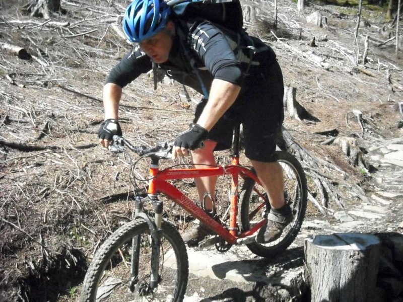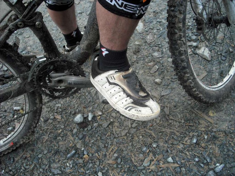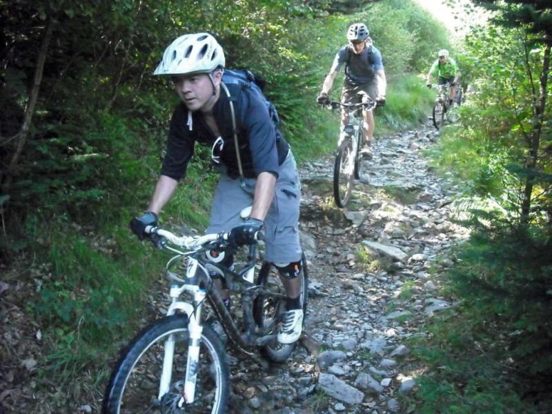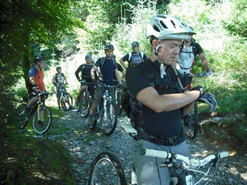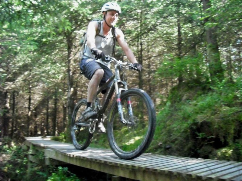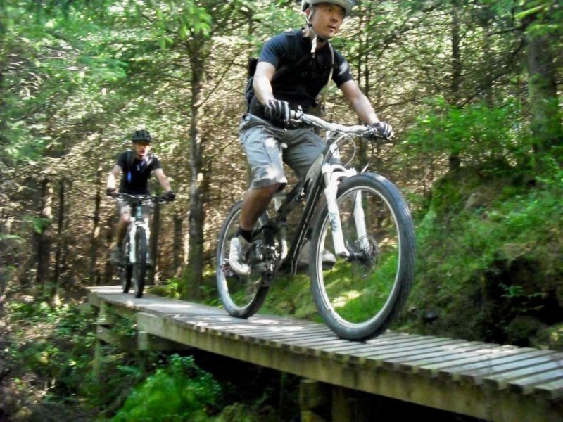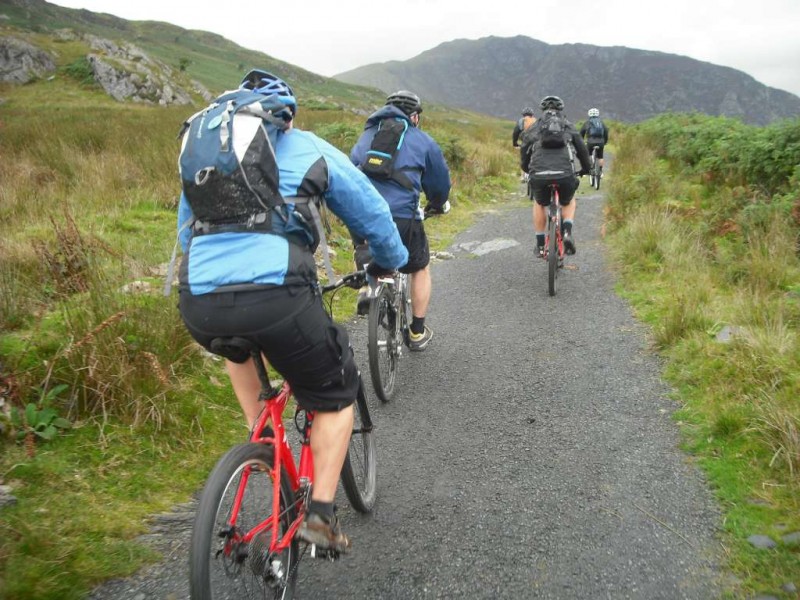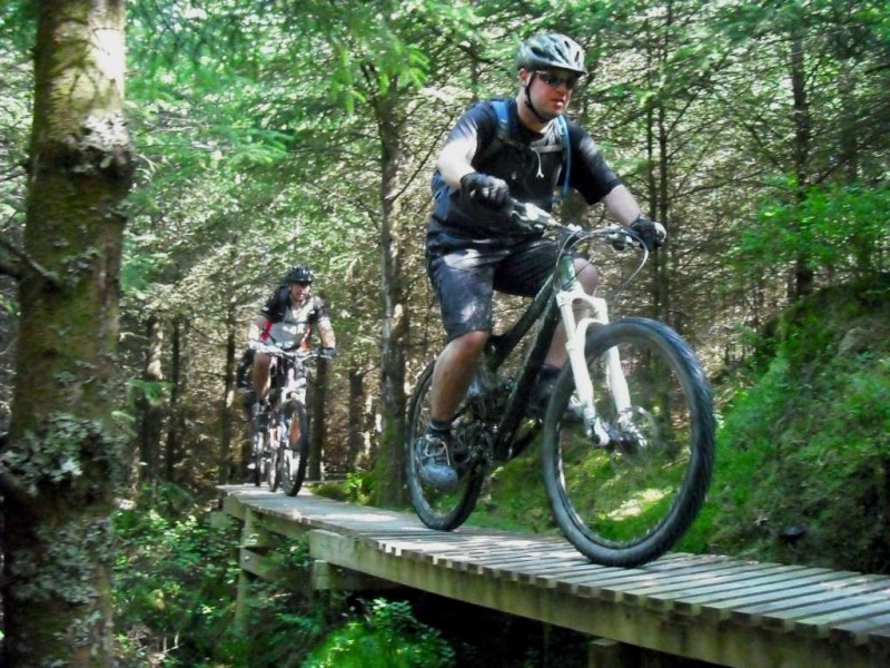 MBSwindon North Wales Trip August 2010 This was a four day trip to North Wales. Friday 27th Aug 2010 Most people arrived at the Llyn Gwynan camp site near Beddgelert on Friday. An evening trip was made to Coed-y-Brenin for a ride. We had 12 happy campers by midnight. Sat 28th We had a 30 mile epic ride planned. This combined the well known Llyn Cowlyd killer loop with the Marin Trail at Betws-y-coed. See Google map / Bikely map for details. It claims 56km and 1745m of ascent. After some serious sausage sandwich action, some general faffing and then some van starting issues we were on the bikes by 11am. The route began in the car park behind the Pinnacle Cafe at Capel Curig. It had been raining off and on most of the morning and this turned harder as we walked up through knee deep boggy sections on the hill up to the reservoir. Mechanically things didn’t go too well, with a puncture within quarter of an hour of starting. Then we had a rider whose legs were turning but the wheels were not. He’d got a permanent freewheel, which isn’t much use on a hilly ride. We tried using cable ties to connect the hub to the wheel, but this was a much use as a chocolate teapot and lasted all of 10 seconds before failing. Luckily it was all downhill back to the car park, so we sent Chris off to go and fix his bike. After a major road descent we made it to the Glanrafon Cafe at Trefriw for about 2pm. In the afternoon we did the Marin trail. This starts with a brutal fire road ascent that a few people commented on. Half way round the trail most opted to do a road return to the start point, leaving three of us to madly try and complete the original loop. This involved hammering the rest of the Marin trail as quickly as possible. It seemed a lot better that way. We then had a big climb up lanes to Llyn Geirionydd, then a harsh fire road climb and descent to the next valley. We hit the bottom of the final ascent at 7pm. This was a walk up 200m of mountain path. We were rewarded the other side with a descent back to the Capel Curig. The route gave us 35 miles of riding. We now had three riders with bikes, one inflatable boat and one car. We managed to fit all of that into a Mk3 Golf estate. Then we went to the pub. In an area that has more than its fair share of ropey pubs with a “take it or leave it” attitude then the Bryn Trych offers a beacon of hope. Tripadvisor reviews. It’s not the cheapest, but the portion size is generous and I’ve never left feeling hungry. They’ve been doing a lot of renovation work over the last few years. Good company, beer and food. Sun 29th The weather hadn’t improved on Sunday, so we started the day with a trip to the legendary Pete’s Eats in Llanberis for breakfast. In the afternoon five of us went to Coed-y-Brenin whilst the others walked up Snowdon. We rode The Beast (of Brenin) trail. This combines the MBR route with most of Dragon’s Back. The Dragon’s Back is 30km, whilst the Beast is 38km. We cut out the 6km pointless loop section (Google Map/Bikely map). This then gave us 32km of technical trail to enjoy. I noticed that there had been further improvements to the trail since my last visit two years previously. A few new berms, a bit more singletrack (Beefy section) and some decent sized rock steps on the MBR (Abel section) route all made the visit worth it. I’ve always been a bit saddened that the original steep rock slab section was replaced with a swoopy section (Gomez). I never found out why. Maybe it was sustainability, or maybe it was health and safety stuff. The route was just over 18 miles (30km), taking out total to 53 miles so far. We had a big feed at the bungalow cafe half way round and then paid another visit to the Bryn Tyrch. Mon 30th We visited a favourite trail of mine: Penmachno (Bikely map). The rain had finally gone, giving us Blue skies and sunlight. We rode both loops, giving us another 18 miles (30km) of decent trail. Everyone agreed that the trail was far more fun than the Marin trail. After that we all had to return to the mundane reality of our sad little lives back in Swindon. |