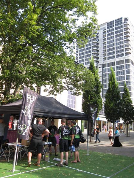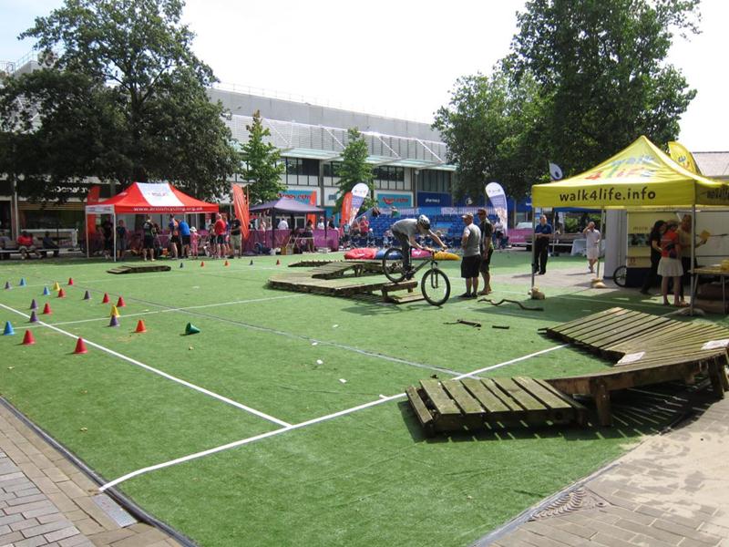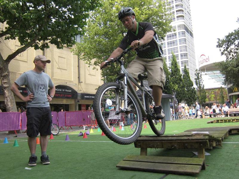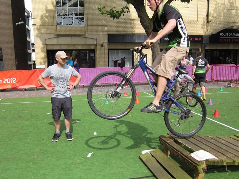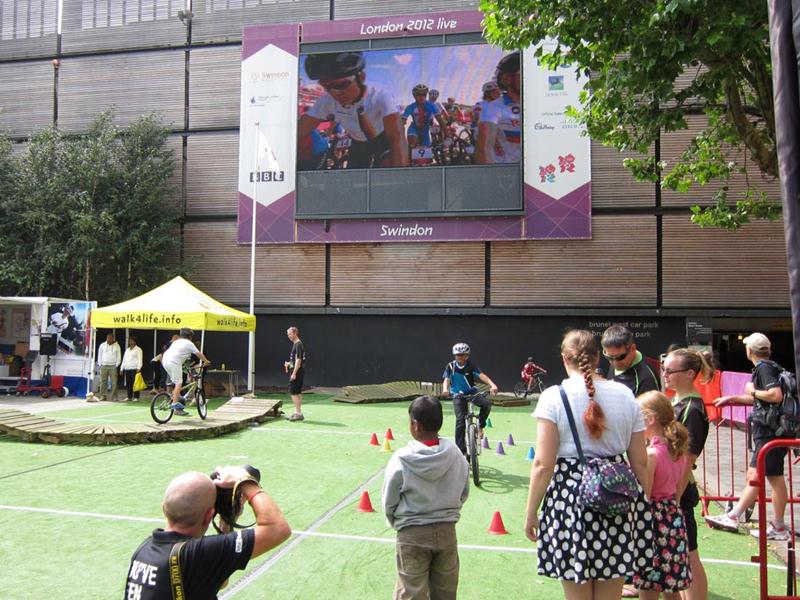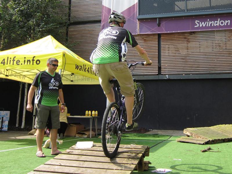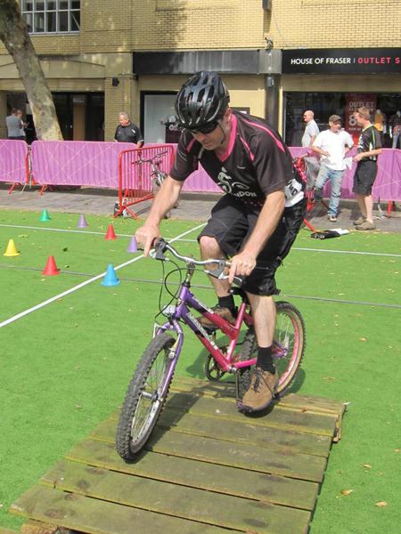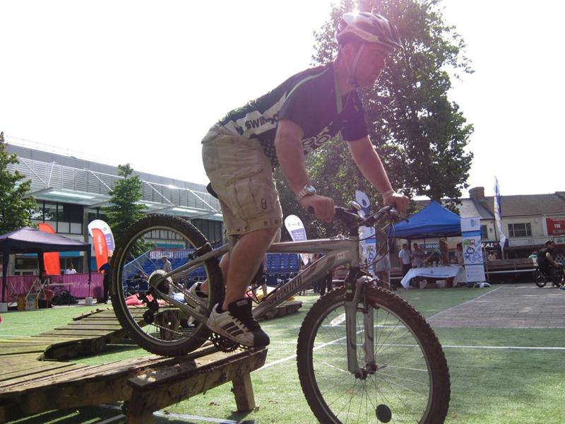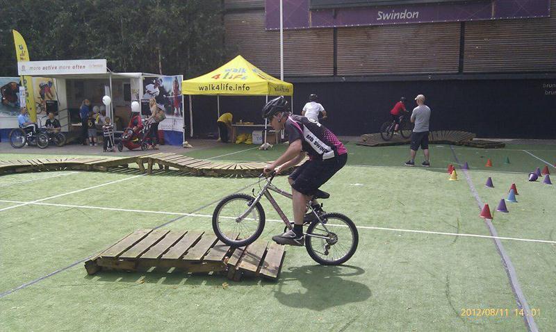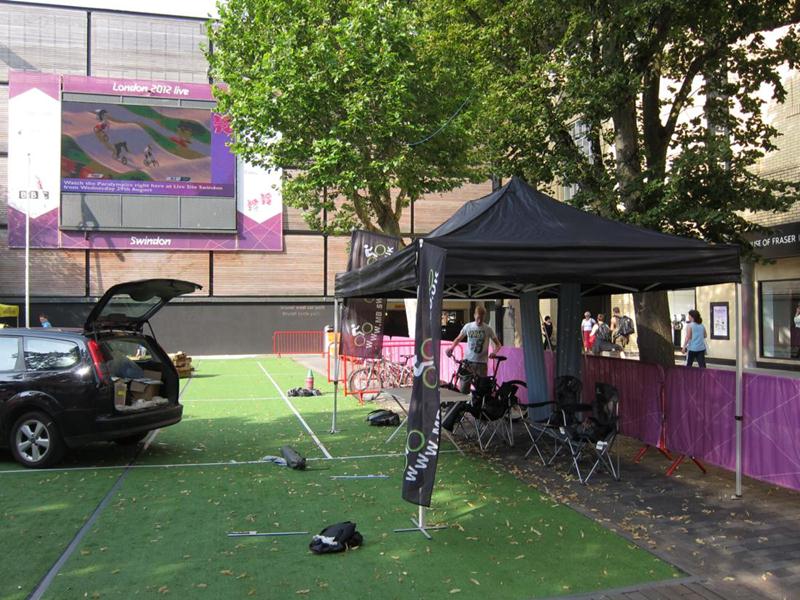 This event was held at Wharf Green in Swindon town centre on Saturday 11th of August 2012. There was a mountain bike obstacle course which we ran, loan bikes, a 100-seat tiered stand to view the race, information stalls, Wii games in the truck-lounge area, and Watt Bikes. Swindon Road Club, Swindon Cycle Speedway, British Cycling and the Rough Riderz were all present plus MBSwindon with the display stand.
