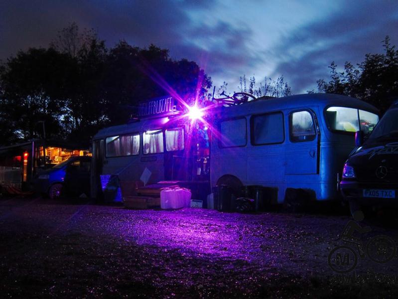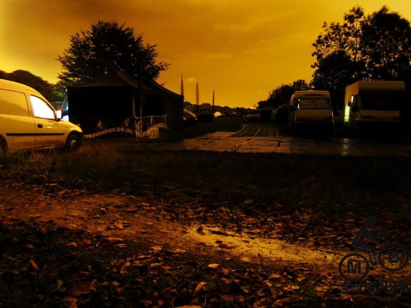 On arrival at the site it turned out that boggy ground issues had resulted in the event village being moved from the main field onto the track junction at the top of the hill. We had a bit of a dilemma: set up near the transition area or near the track. In the end we opted to be near the transition.