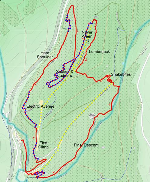 The Royal Rumble route used parts of the trails plus some extra parts and a few diversions. It was heavy going and conditions were still a bit sticky following a lot of rain earlier in the week. The long climb was rewarded with some really fun downhill though. The trail required a delicate approach and the final descent worked really well if you were prepared to roll with it.