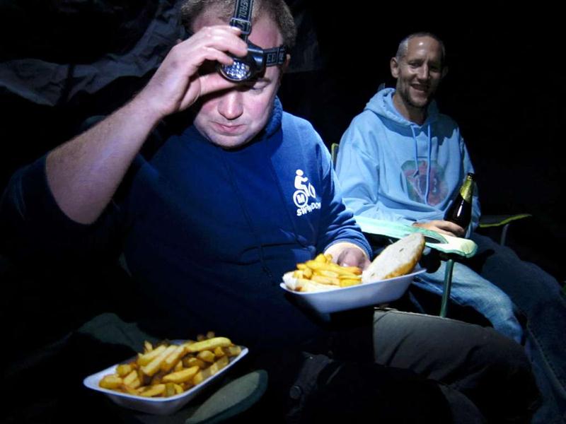 By dark we had around 9 people on site. The Drop Off Cafe dealt with any hunger issues. We sat around in the dark with a few people doing some vital pre-race drinking.