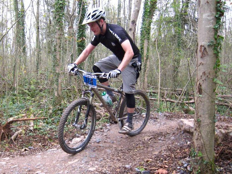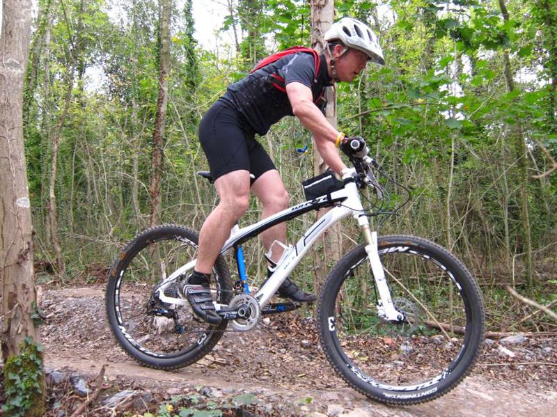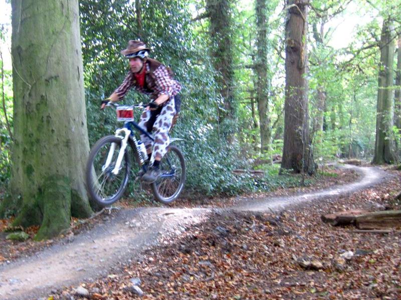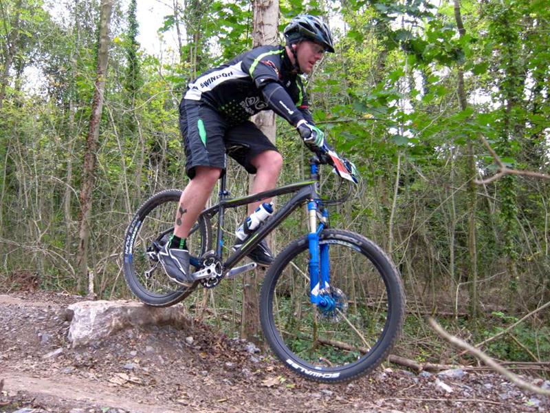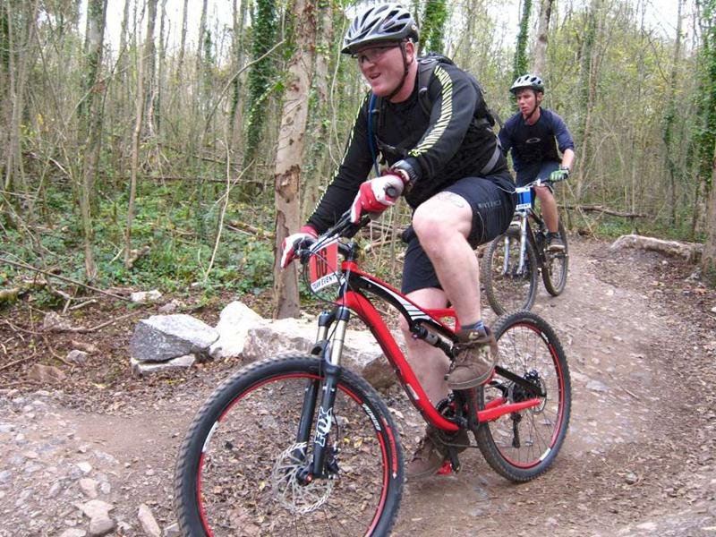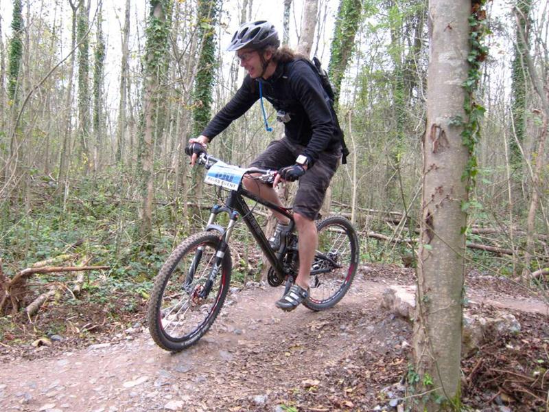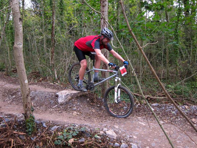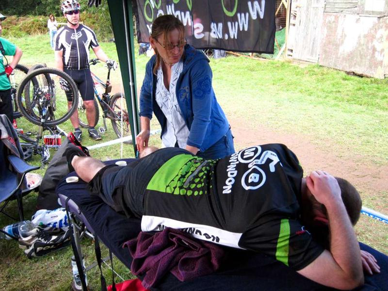 Racer on rock drop at Ashton Court. Sports science massage at Oktoberfest.
