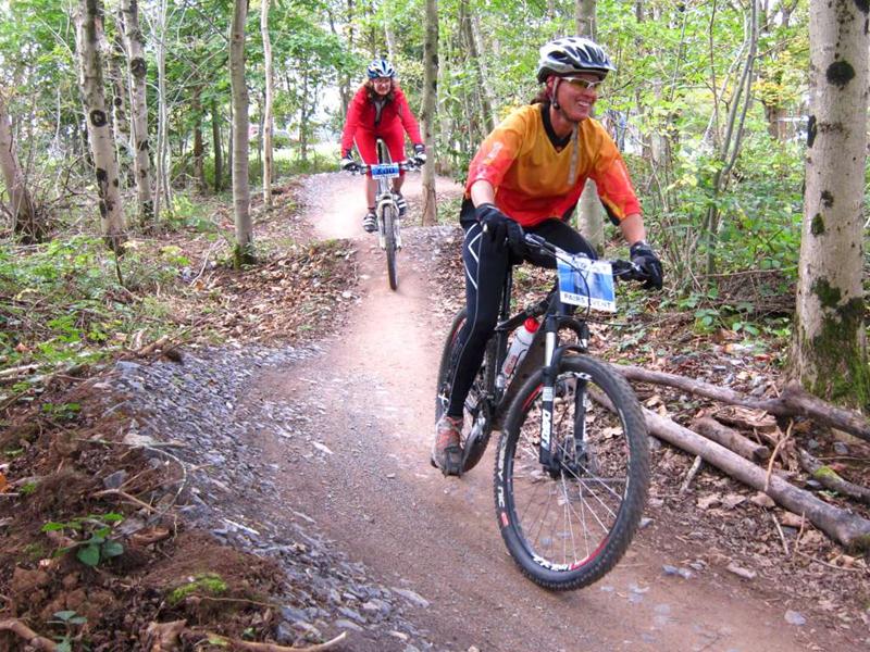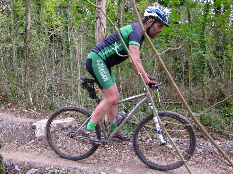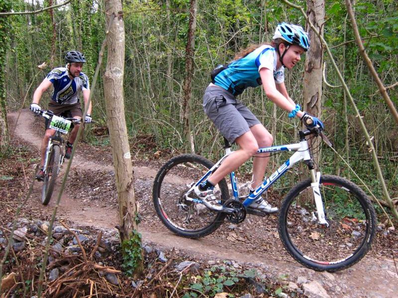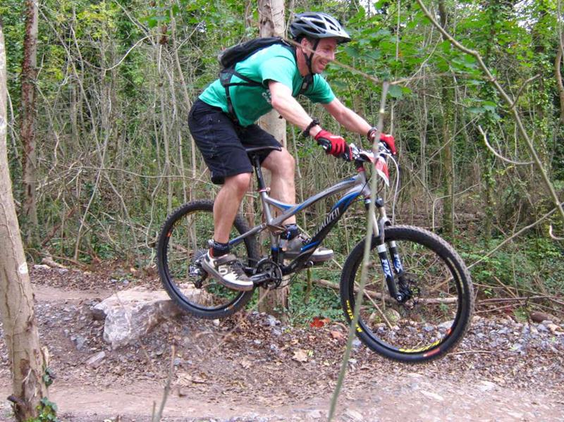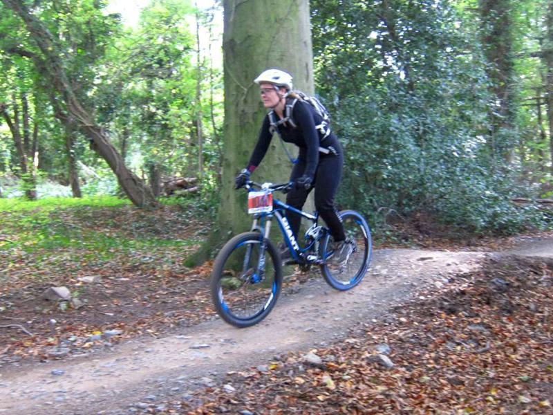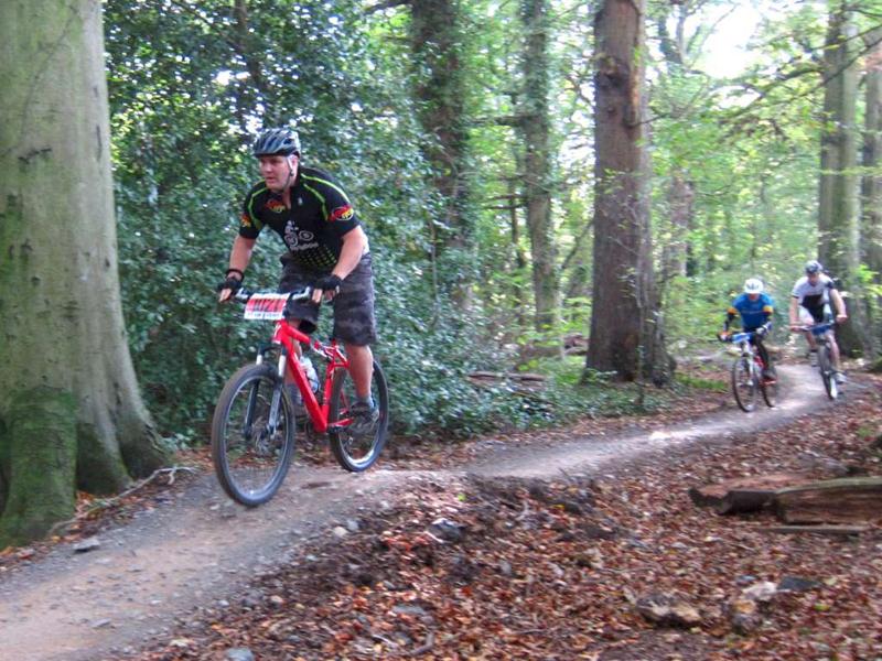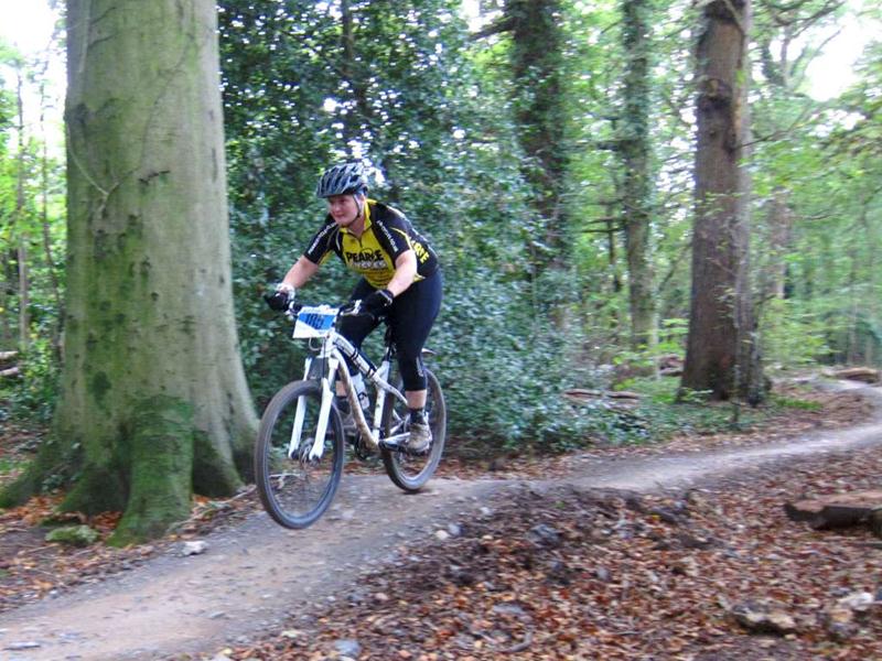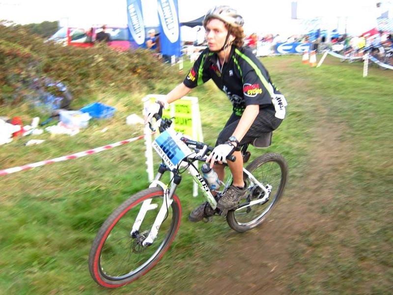 Racer on rock drop at Ashton Court. Sports science massage at Oktoberfest.