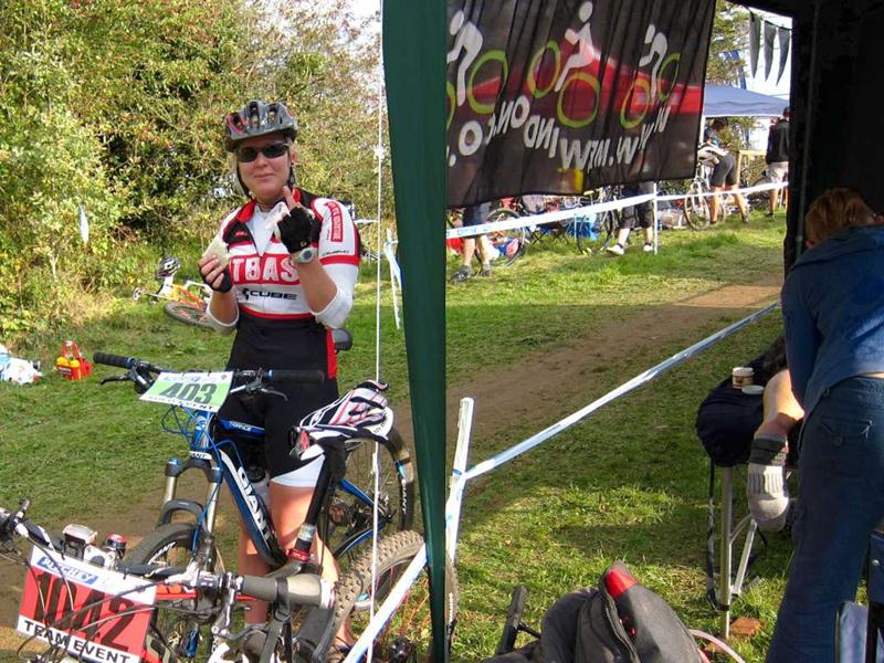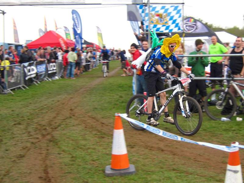 Rider finishing at Bristol Oktoberfest.Rider celebrating finishing Bristol Oktoberfest.