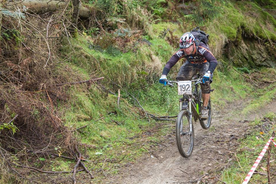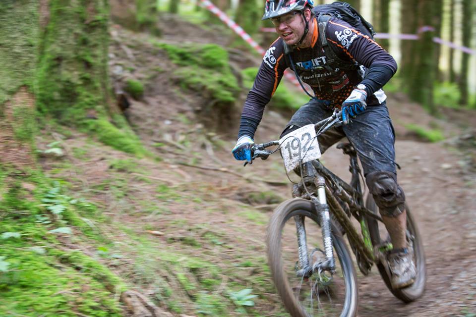I arrived at the Coed Trallwym trail centre at about 9:30 Saturday morning to register, was shortly joined by team mate Phil Allum and Leon Cardy-Stewart and almost immediately we were advised to give stage 1 a walk as it was the most technical and steepest stage of the race… intriguing. Luckily we could see the finish line from where we’d parked so wellies were donned and off up the hill we went. Straight away we could tell how much fun it was going to be with truly freshly marked out tracks – barely a tyre track on them! A third of the way up the hill we faced steep bit of the stage, several switch backs cut into a muddy hillside meant that you’d need some confidence in your front tyre grip. The track “flattened out” towards the top so we skipped that bit and walked across to join stage 2 which was a trail centre descent promising some good speed, jumps and drifty flat corners.