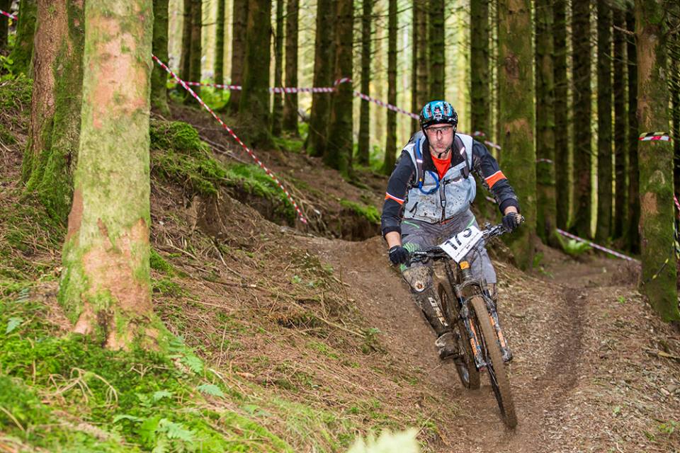 Stage 4 – The blue trail centre descent where you needed to have confidence on the route, foliage meant that corners could come out from nowhere and braking at the wrong point would sap your speed for some short up slopes. The middle had a good section where you could pick up speed and was great fun and the singletrack carried on right to the finish. A deceivingly pedally stage that one.