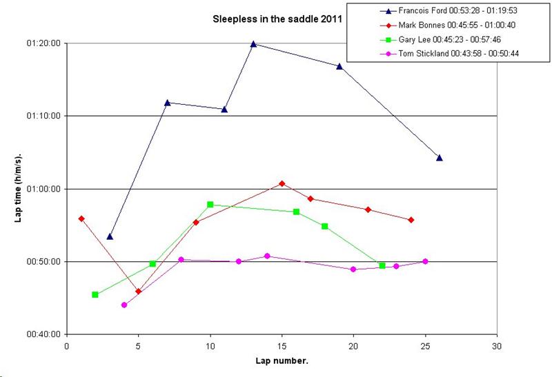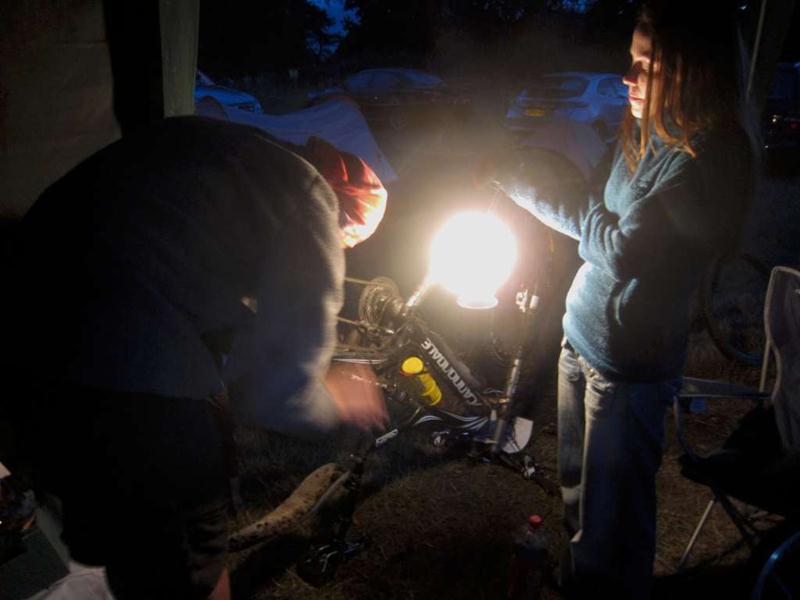 Sleepless in the Saddle is another of the big MTB race events. Others include Mountain Mayhem, 2412 and Bristol Bikefest. MBSwindon had an official team in the twenty four hour team race. There were also several other teams with club members in them. The route was just over 8 miles of mainly singletrack round the Catton Park venue. A similar length to the Bontrager 2412 but less hilly overall. The event started out bone dry at 2pm on the Saturday. There was heavy rain for about half an hour in the early evening which completely changed the conditions. The trail went from dusty to claggy in a short space of time. It then spent the rest of the event gradually drying out. The team put in a consistent performance and ended up about half way down the field – 54th out of 102 teams. This was an average lap time of 56 minutes. Our fastest rider (there on the day – we have faster in storage) managed just under 50 minutes per lap, the equivalent of around 30th place. To get into the top ten would have required sub 45 minute laps on average.