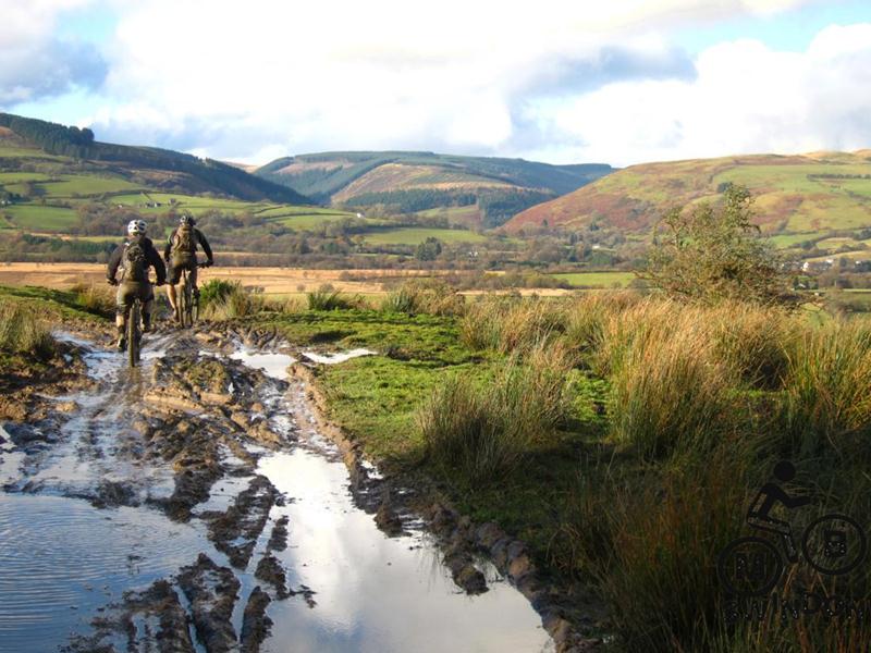 The latter section of the route offered two different descents from the same punishing track climb. We couldn’t face riding it a third time so took the alternative track up to the Crychan car park. The route finished off with a climb up the Roman road with a series of big puddles. There’s a funny video of this from youtube.