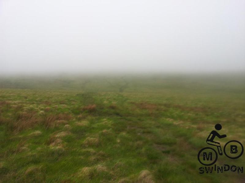 I was suffering my regular lower back pain at this point and cursing being caught by yet another rider as we exited from the woods onto the open hillside. Still, I had four people in sight as I started out on the boggy, tumpy grass. I noticed that a rider ahead of me who was pushing had caught another who was cycling. I took the message on board and started walking myself. This was definitely the fastest method of moving on the terrain. The wheels would just sink too hard into the soft grass when riding.