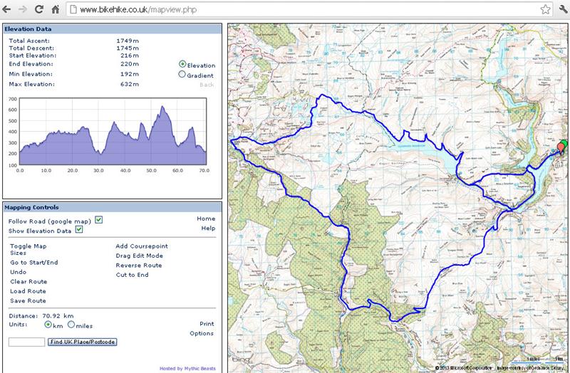The missing bit from the start is shown on this route (OS Map, GPX) from the Mountain Yoga Breaks weekend. My Garmin computer box said 71km/44miles in 6 h 31m (5h 42m moving). That’s 11km/h and 12.6km/h respectively. In terms of elevation: