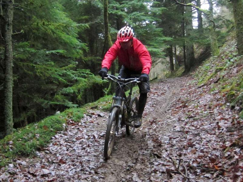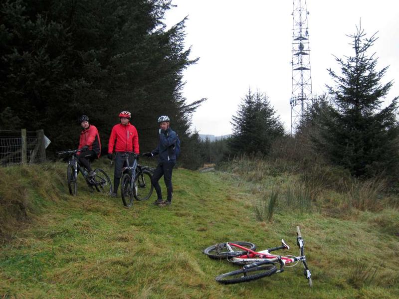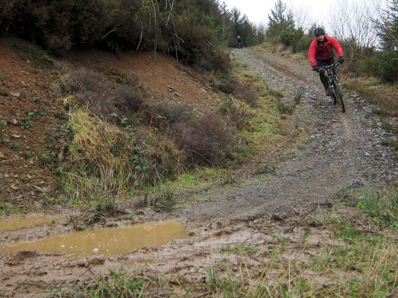 We started out by riding into the wind along the main road towards Sugarloaf. We soon pulled off this and after crossing the railway line we were climbing up towards the trees. After a ball busting climb up a soggy hill we reached the forest. Once at the top by the radio mast we dived off through the trees with an interesting line over tree roots.