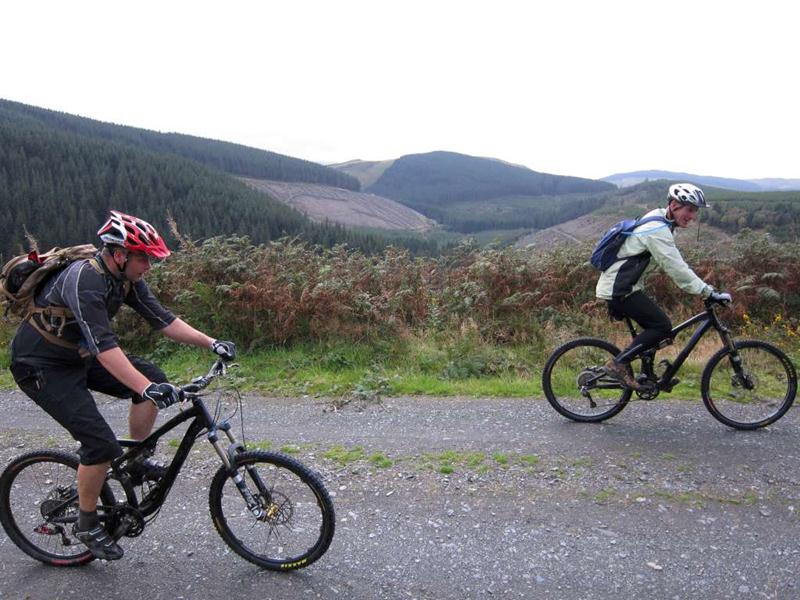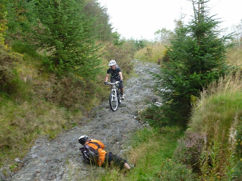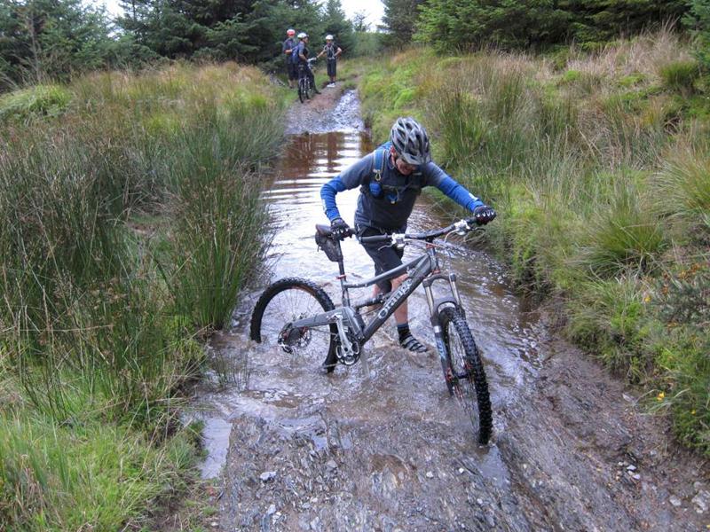 This was a three day trip to the Cambrian mountains in mid Wales. See also photos from new year 2011. MIOWEOW – Middle of Wales, End of the Week. We stayed at the Neuadd Arms in Llanwrtyd Wells. The town is famous for the events like bog snorkelling, organised by Green Events. Friday 23rd Sept 2011On Friday we met up with Neil Delafield from Red Kite Events who took us on a 28 mile route round the local woods. This took in the best bits of the various Ale Wobble routes plus two new bridleway descents. We must have climbed around 2,500m over the course of the ride. The climbs were worth if for the descents though – the lava flow with grippy volcanic rock, the others giving fast and narrow bridleways and a final descent over some great rocks. We had an evening meal at the Drover’s Rest on Friday (contact them to ask about special deals for groups). They will also deliver packed lunches to you en-route if you book in advance. Ale Wobble classic route: OS Map, GPX, Map My Ride. Saturday 24th Sept 2011On Saturday we were joined by another five riders who had come on a day trip up from Swindon (Ben, Kate, Phil, Chris and Rob). We did the classic Dothie Valley route plus an extra 5 miles of road to get there and back. This route goes round the Llyn Briane reservoir (Wikipedia) and includes a proper wild mountain section up near Soar Myndd. I actually did this classic trail by accident on my first Ale Wobble back in 2001 (ish). We bumped into Jason from Mudtrek Chalets (club discount) on our way round. We finished the day off with a large beer and food session at the Neudd Arms. A curry with half rice / three quarters chips always does the job for me. Dothie Valley route map: OS Map, GPX, Map My Ride. Sunday 25th Sept 2011On Sunday Neil from Red Kite events took the party South to Crychan Forest. Tony Holmes says “Only 4 of us on the ride round the big forest to the south of Llanwrtyd. After some overnight rain conditions were wet, muddy and slippery and were not helped by the 4×4 brigade! Some excellent riding there and well worth a return visit but you need a guide! Similar to The Wyre Forest in many respects but steeper and trickier downs. We returned up a long gently rising version of Lava Flow which was followed by more massive puddles! Gary had a serious mechanical involving his rear mech so had to go singlespeed for the return – it didn’t slow him down at all though! A great weekend and as you say the faces tuffing and drinking opportunities are second to none. I made a point of thanking the Neuud Arms for letting us change after the ride and for such a great welcome all round. If you’re interested in another trip to Llanwrtyd Wells in 2012 then post here or contact tom at mbswindon dot co dot uk. |