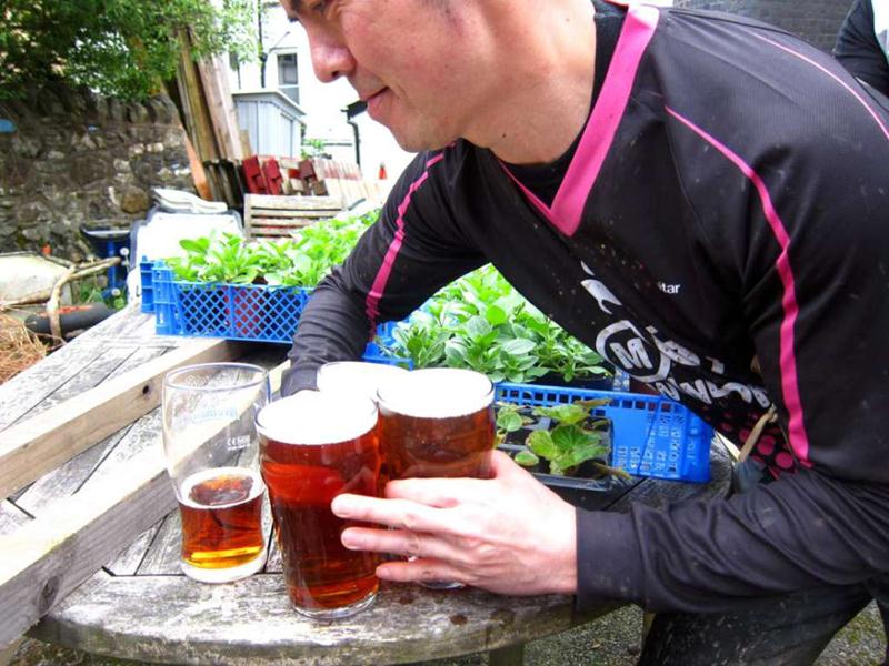 We called in at the Cafe for some welsh rarebit and tea.The route then took in more classic ale wobble action: up the track to the farm and then the rock slab climb onto the top of the hill. A bit of a road section before the final, long fire road climb back to the bottom of the lava flow. We rode up a fair bit of that too.