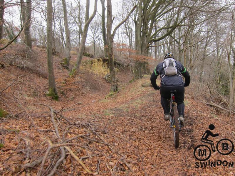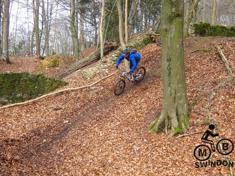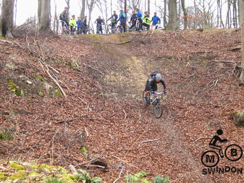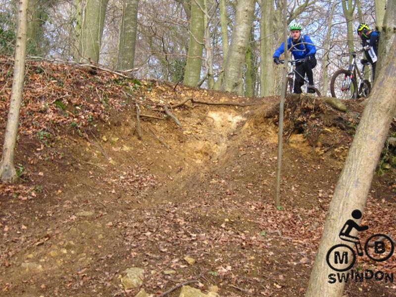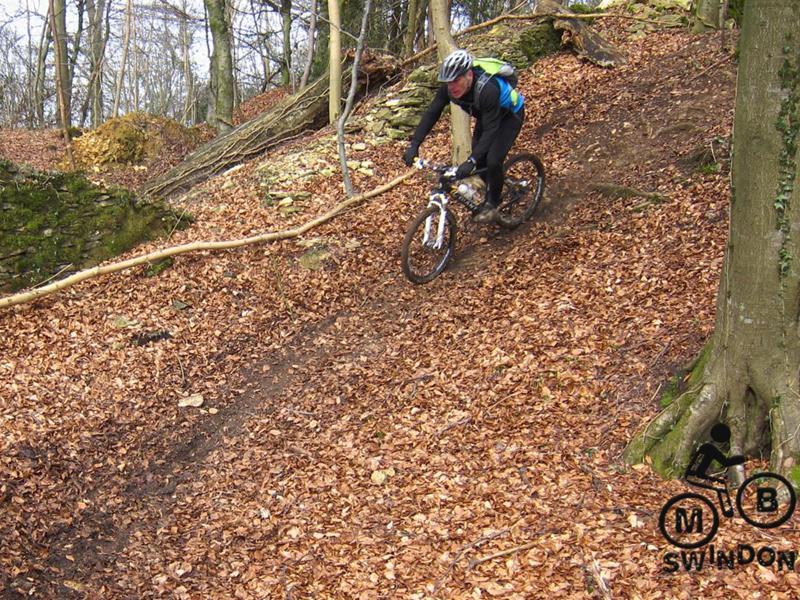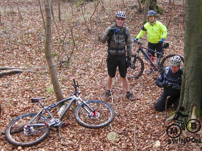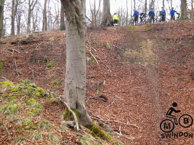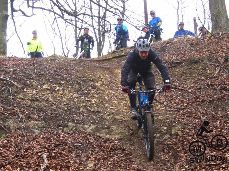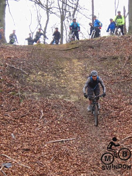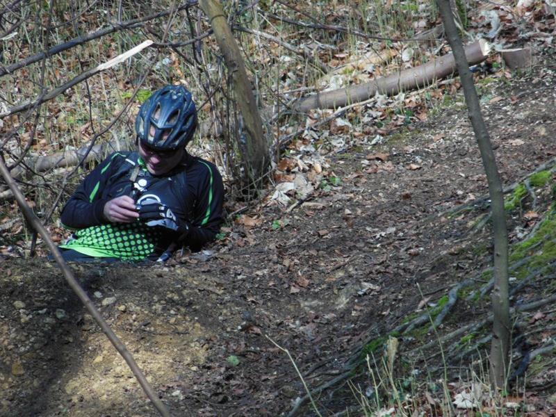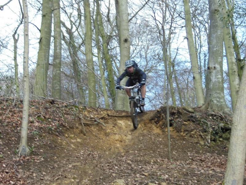 At last we got into the woods just outside Birdlip and this where the fun would start. Off we went down some quite nice flowing single track and still managed to find some little uphill bits to keep the heart pumping. Half way along this section we came across our first bomb hole of the day where the braver members of the group threw themselves off and over the edge.