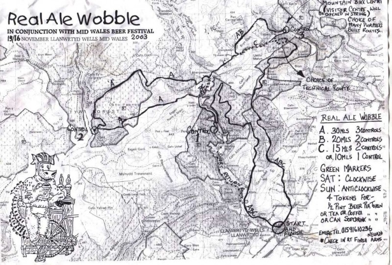 The Real Ale Wobble offers a choice of cross country routes through the Cambrian mountains with lengths betwen 15 and 30 miles with several beer stops along the way.