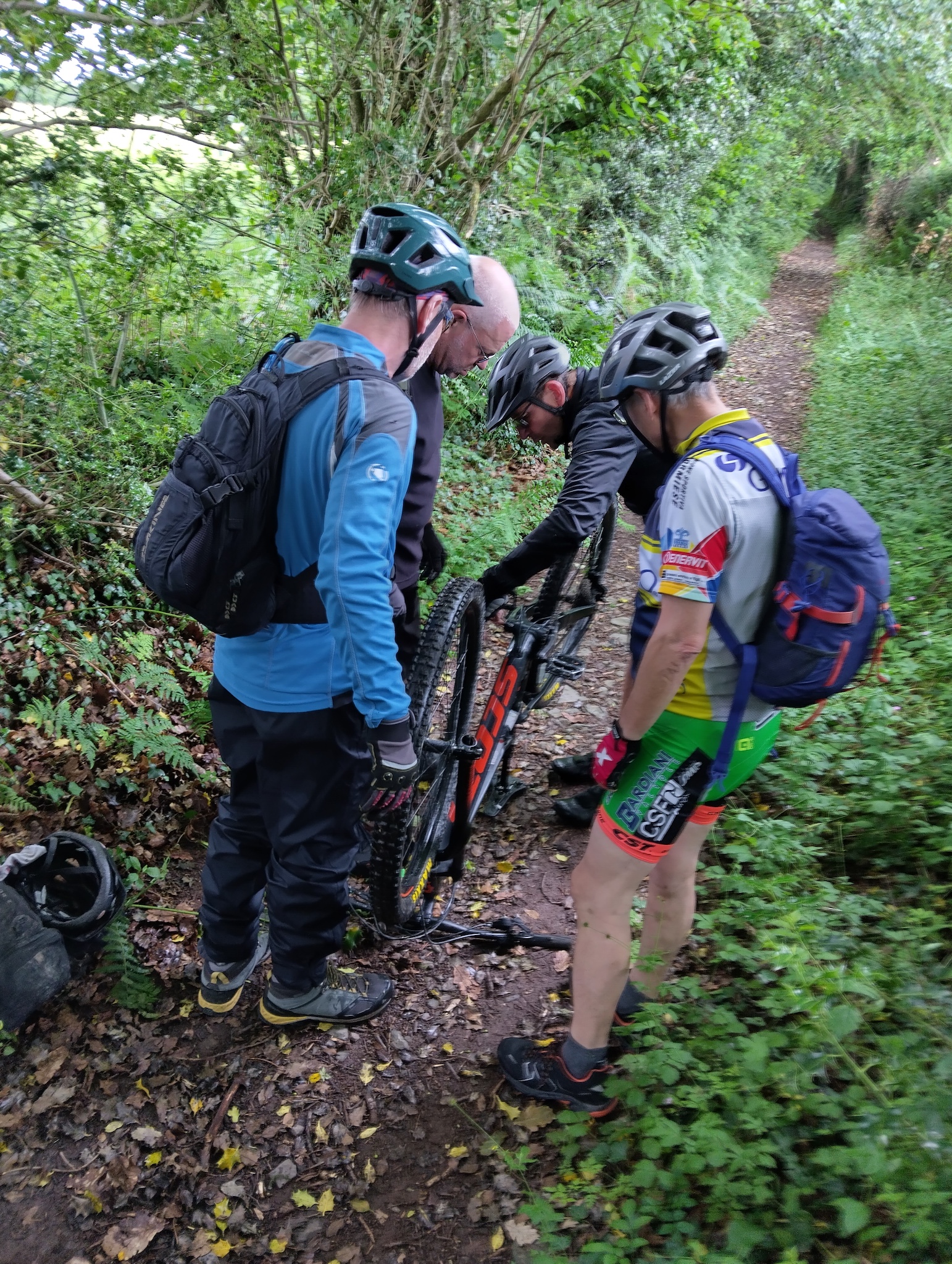 A group of us stayed at the Star Bunkhouse for the weekend, so we could ride on the Saturday and the Sunday. The Sunday was to be the tried and trusted Gap ride, but Tom had planned a mystery route for us on the Saturday. So full of excitement, we set off into the unknown… and stopped half a mile later to re-attach Tom’s crank!