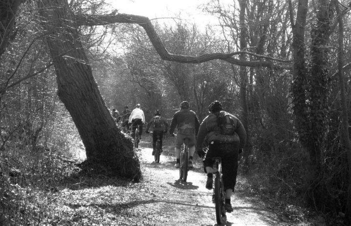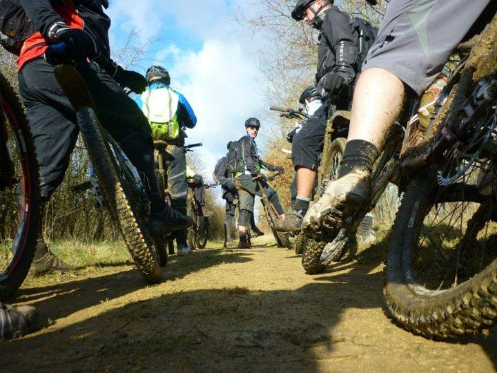 After 8 miles or so we stopped at the Waterside Cafe at the junction of Spine Road with Wickwater Lane for a well deserved hot drink and something to eat. We managed to fill the bike racks outside the cafe with our bikes and the staff were very welcoming to 17 muddy mountain bikers.