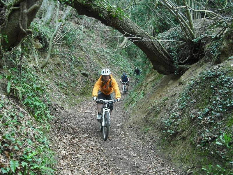 ![]() The clocks had just gone forwards which mean that this was the first ride of Spring. We were joined by local rider Mark Acres who lead us on a hilly route round the Cotswold edge near Wotton Under Edge. This was a varied route that included bits of road, woodland tracks, narrow paths, and tight singletrack through trees. We met at the Hunter’s Hall Inn near Kingscote. They had kindly let us use their car park as a starting point. The route took us along some lanes before taking a great track descent past Scrubber’s farm to Ozleworth bottom. After following various muddy tracks it was the first big climb up into the Ozleworth estate. Anne opted to take the direct route to the pub from here. A short section of road took us past the radio mast at Goose Green. The following steep single track section with very tight corners was voted as one of the best bits by many of the riders. This was followed by some easy cruising along the bottom of Tyley Bottom before the inevitable climb. We didn’t snigger at the sign for Spuncombe Bottom. In Westridge wood we followed some secret single track through the trees before calling in at the quarry near the Tynedale monument. There were a load of downhill riders dropping down the intimidating edge of the quarry. We made our excuses and stuck to playing on the easier lines. The second big descent took us down to North Nibley and then on to the lowest point of the ride. As sure as night follows day then a big descent has to be followed by a big climb. This time it was straight up to the top of Stinchcombe hill. Here Mark showed us some more sneaky single track through the trees. A fun section of steep track took us the New Inn at Waterley Bottom. After lunch it was time for double arrowed road climb. The sign post at the top helpfully said “steep hill” for those who didn’t notice. After crossing the main road we took in a load of leafy tracks with several really steep climbs. The route was topped with a steep road climb and some crusing along back lanes back to the Hunter’s Hall. The route was just under 20 miles long (32km) and had around 910m of climbing. Big thanks to Mark (aka “the machine”) for showing us round. He said that there’s loads more, so we will probably be doing a return visit later in the summer. |