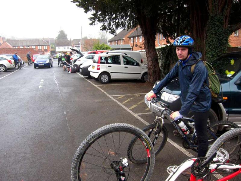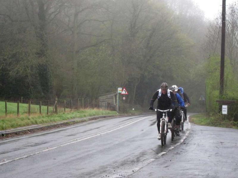 At Hollybush car park we started on one of the main climbs up onto Midsummer Hill and then Swinyard Hill, muddy and wet in places and hard work to say the least. Part way up this Gary Palmer had the first “off” of the day courtesy of a metal drainage channel! Not a good day for Gary!