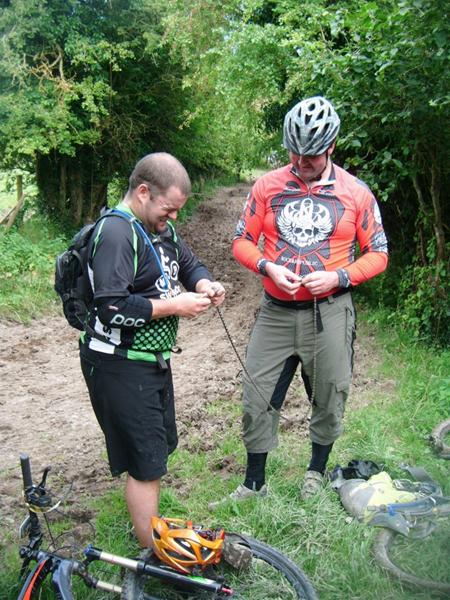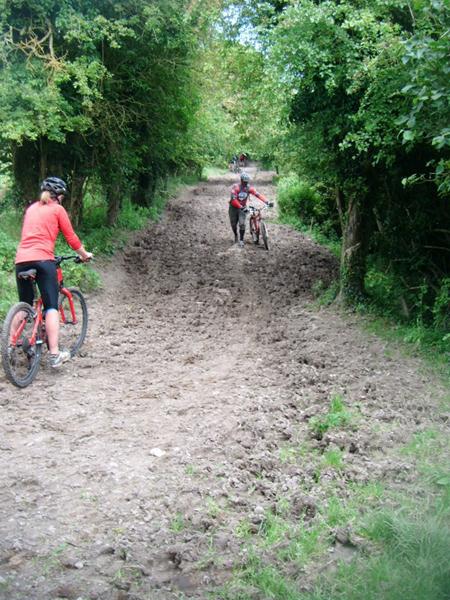 I’d got though it quite easily the previous Sunday as it was so wet that it was hardly worse than riding through axle deep water but a week of mostly dry weather had stiffened it up significantly. The consensus was to hit it fast and just keep going. That resulted in at least one shoe briefly lost, one busted chain and, I think, a record of about 20 yards covered before bailing. Eventually everyone made it it through in various fashions and the following bit was fast enough to knock the worst off.