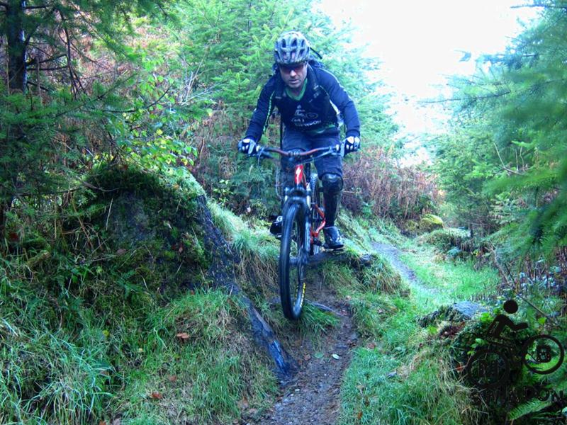 On Sunday we visited the Raven trail at Gorlech and left one of the Garys  on recuperation mode back at base. Only Philip Allum felt like joining me on the complete Raven route. The others opted for the blue/green combo (a really fun route). Our mud training paid off – a few sections of the Raven route were rock solid and dry. It was quite a contrast with the previous day. On Saturday  full output had achieved less than walking speed whilst on Sunday half output was enough to make the bike pick up like a motorbike on full throttle.