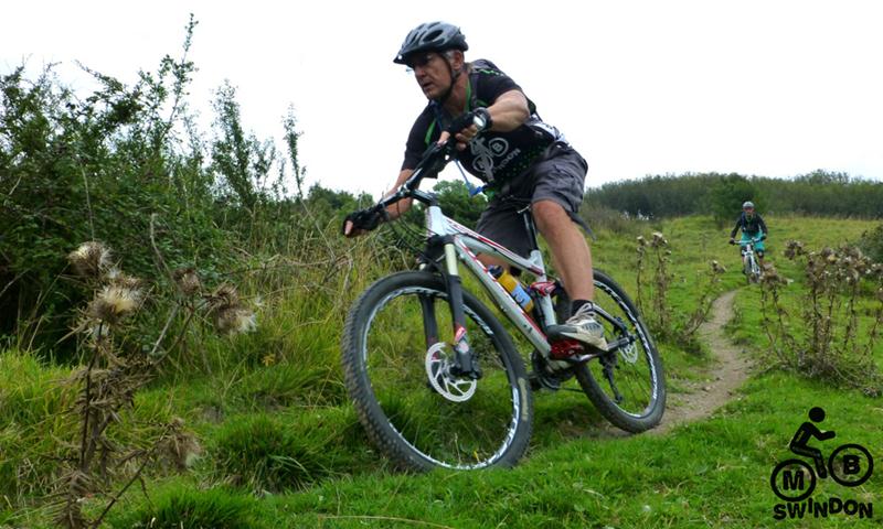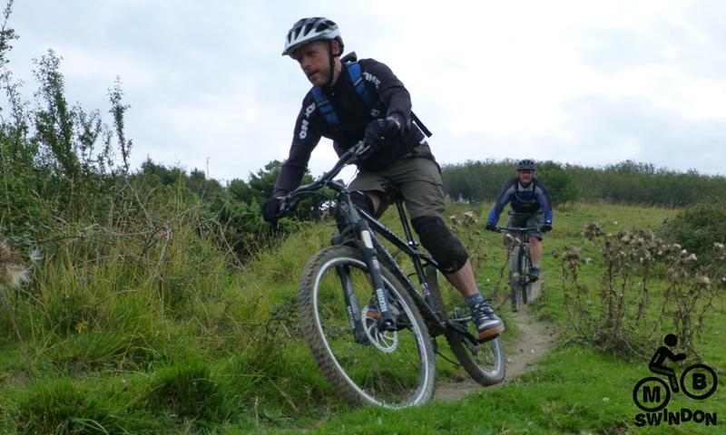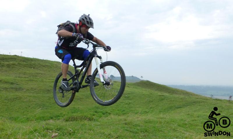 After the steep climb from the pub to get everyone warmed up, we rode out on to Beacon Hill for our first bit of fun. While we tended to a slight mechanical fault, a number of the group had some fun in a small grassy bomb hole at the top of the first descent. This was good fun and our first opportunity to take some photos.