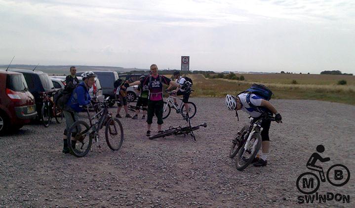 The ride started in a car-park a couple of miles from junction 13 of the M4, which was very much ‘in the middle of nowhere’ – we even drove past a place called ‘World’s End’ to get there! Despite its remoteness, almost 20 riders had made it, including a last-minute boy-racer entrance by Richard Ford, and Fiona and Tristan who’d found their own car-park a mile away. It was good to see a couple of new faces along for their first club rides, too.